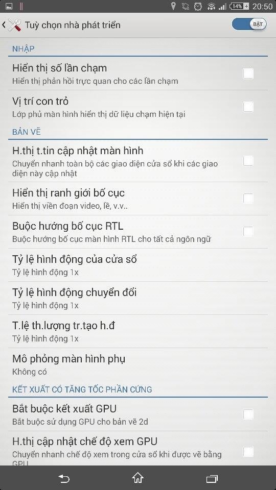 | Kéo xuống một chút sẽ thấy dòng “Buộc hướng bố cục RTL” (Force RTL layout direction), ấn vào đó. |