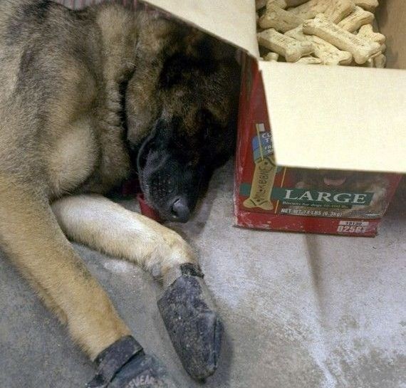 Micah, giống chó chăn cừu của Đức, nằm cạnh hộp bánh quy dành cho chó tại một trạm cứu hỏa đối diện WTC sau 20 giờ tìm nạn nhân mắc kẹt dưới đống đổ nát. Ảnh: NY Daily News