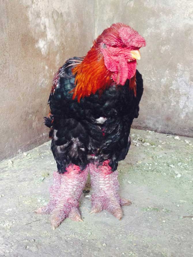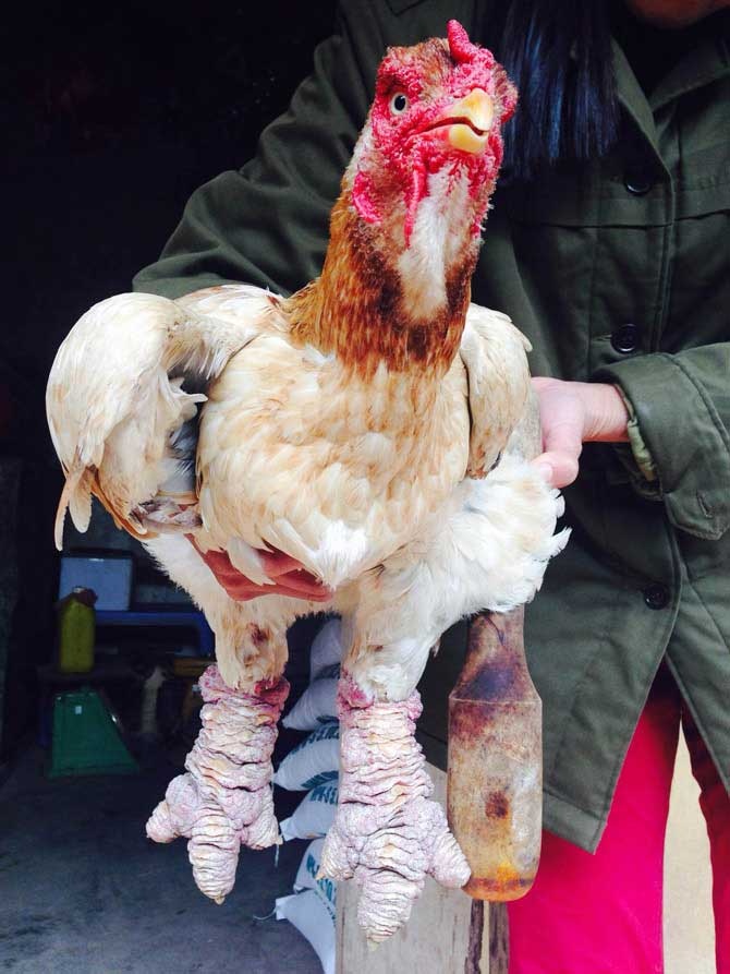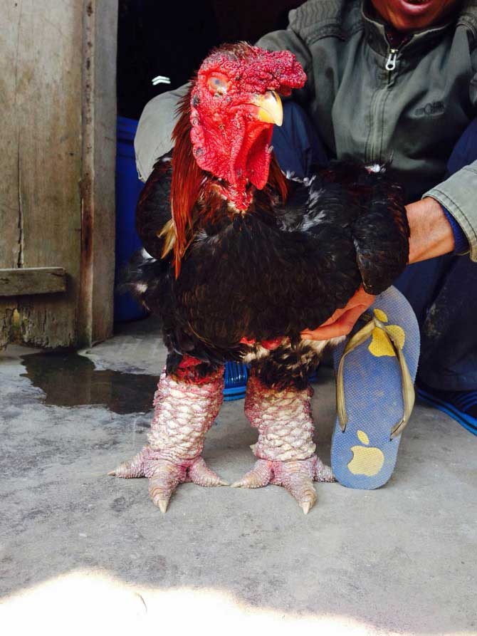 | Con gà trống "khủng" 5,9kg được bán với giá 28 triệu đồng. |
