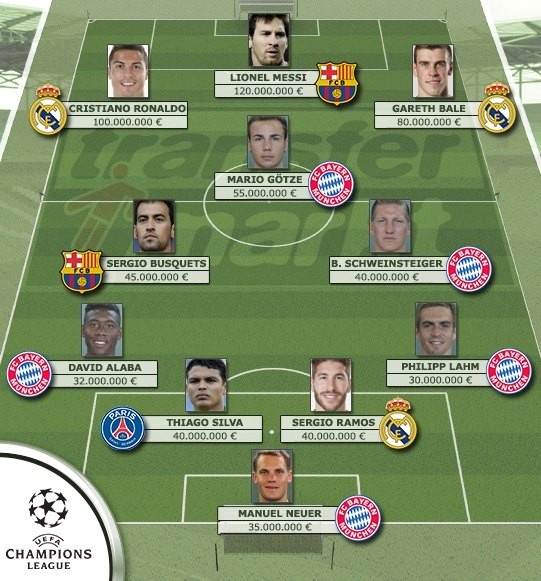 Gareth Bale (lệch phải, Real, 80 triệu euro)