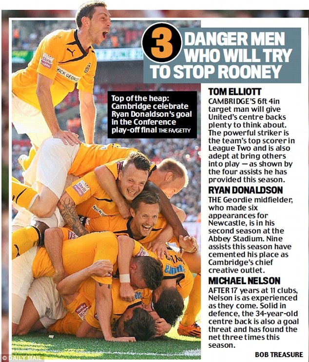 | Bộ ba Tom Elliott, Ryan Donaldson và Michael Nelson hứa hẹn sẽ giúp Cambridge United ngăn bước tiến của Rooney và đồng đội tại FA Cup mùa này. |