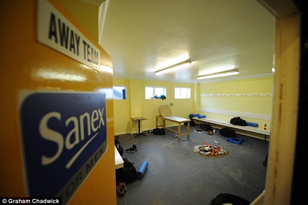 | Phòng thay đồ dành cho các cầu thủ khách không có tủ nên khá bề bộn. |
