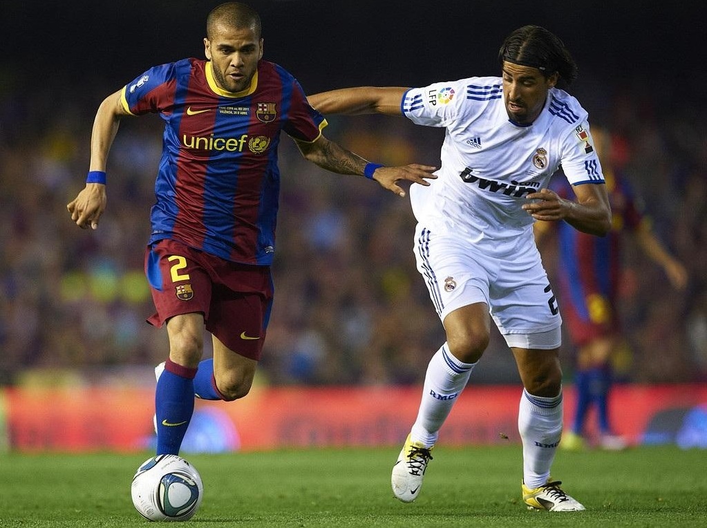 Hậu vệ phải Dani Alves (Barcelona): Ngoài tài năng, hậu vệ người Brazil còn là cầu thủ rất tiểu xảo. Tình huống ăn vạ khiến Pepe nhận thẻ đỏ trực tiếp trong trận đấu giữa Real và Barca tại bán kết Champions League 2010/2011 phản ánh rõ nét sự láu cá của Alves. Ảnh: Fifawallpapers.
