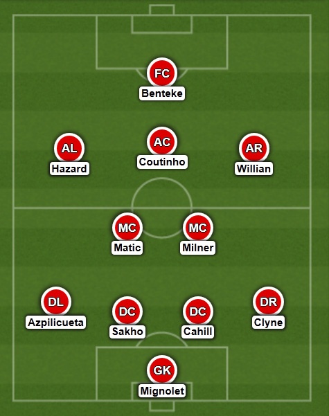 Thủ môn Courtois của Chelsea không thể góp mặt ở trận tiếp đón Liverpool cuối tuần này, bởi anh đang điều trị chấn thương đầu gối. So với thủ môn số hai của Chelsea, Begovic, vị trí người bảo vệ khung thành trong đội hình kết hợp xứng đáng thuộc về Mignolet của Liverpool. Anh đã có 4 trận giữ sạch lưới cho Liverpool sau 10 vòng đầu.