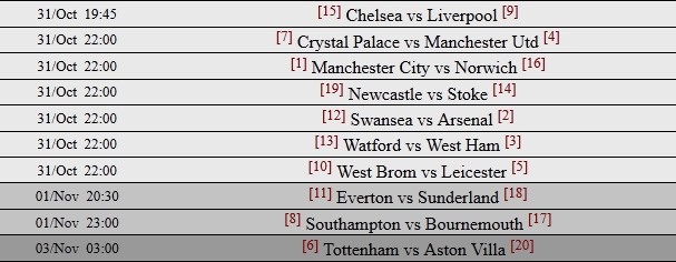 | Lịch thi đấu vòng 11 Premier League với trận tâm điểm trên sân Stamford Bridge giữa Chelsea và Liverpool lúc 19h45 ngày 31/10. |