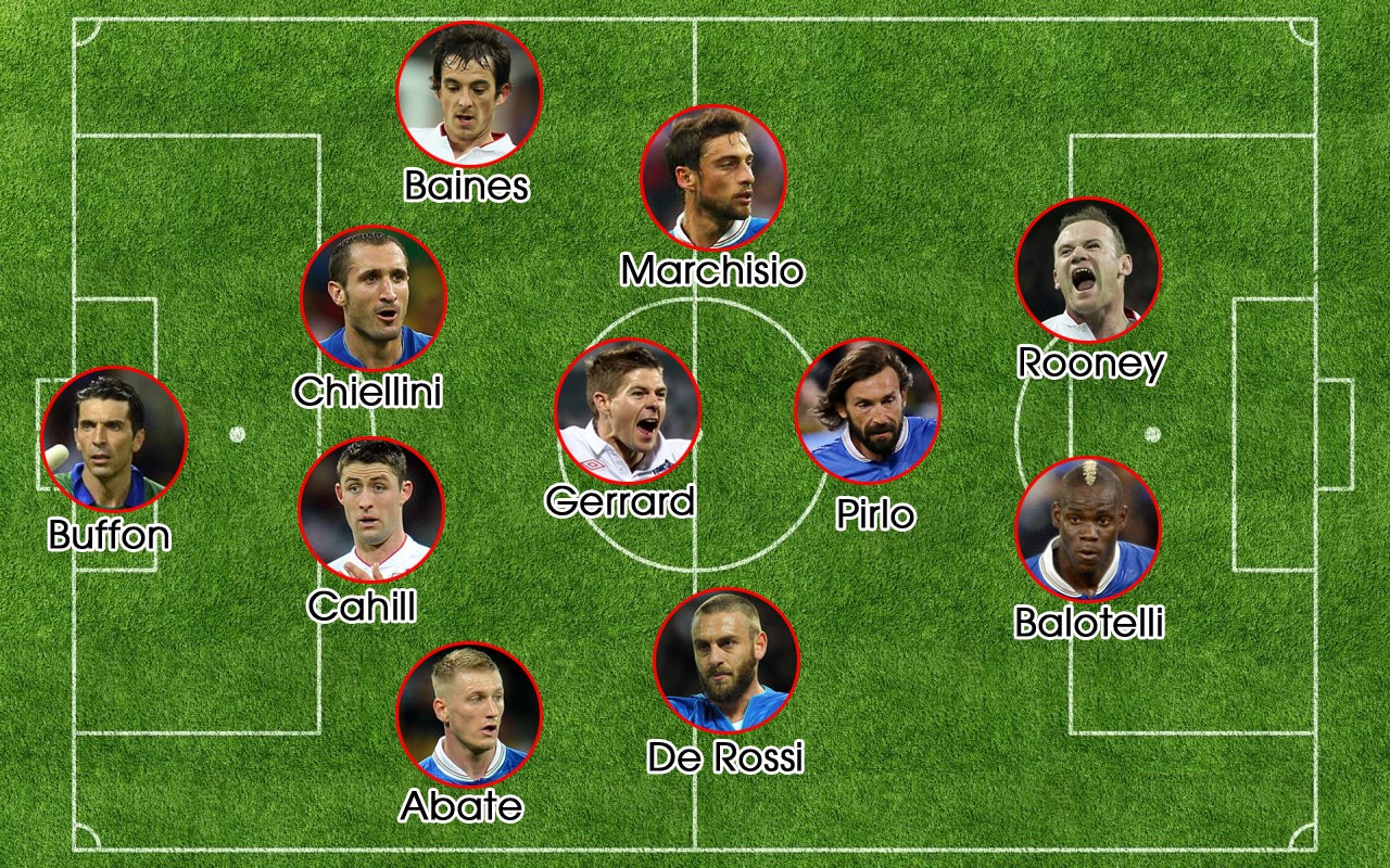 | Đội hình kết hợp Anh - Ý theo sơ đồ chiến thuật 4-3-1-2. |