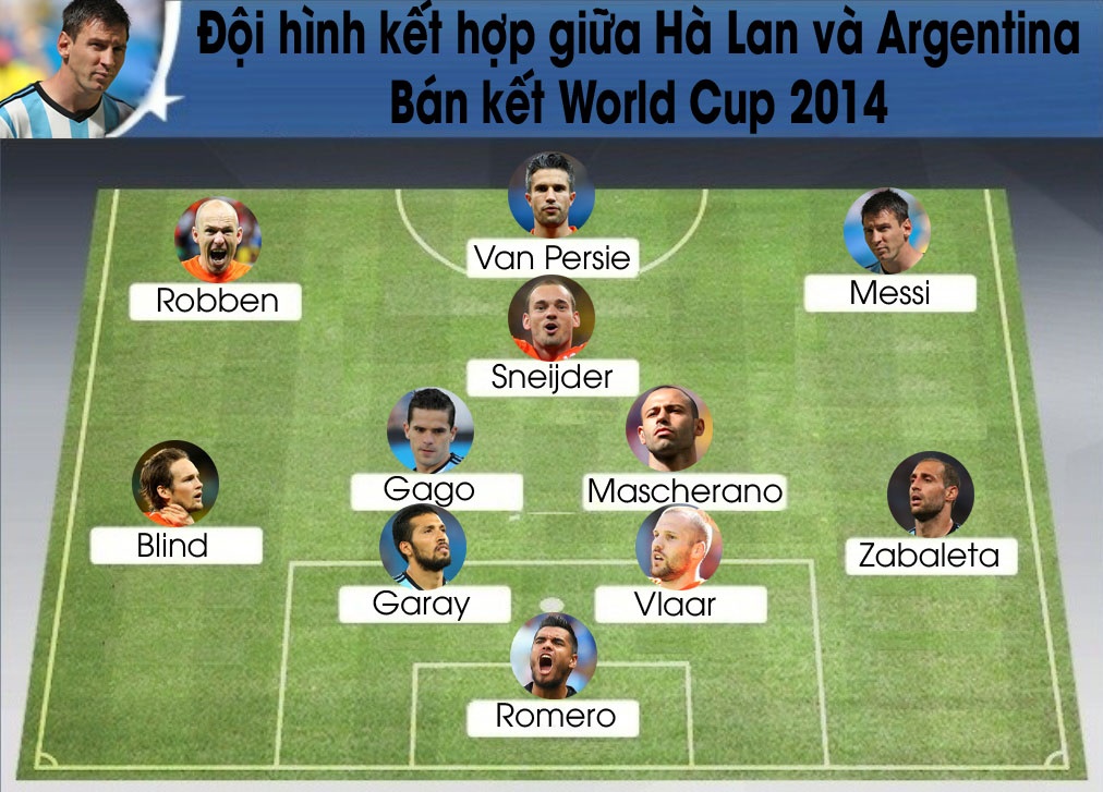 | Đội hình kết hợp giữa Hà Lan và Argentina theo sơ đồ chiến thuật 4-2-1-3. |