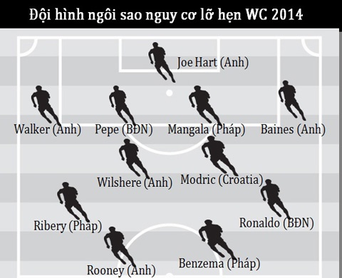 Mới đây, tờ Bild đã lên danh sách đội hình 11 ngôi sao hàng đầu có nguy cơ bỏ lỡ cơ hội tới Brazil. Đáng chú ý, 11 ngôi sao này có giá trị chuyển nhượng lên tới 392 triệu euro.
