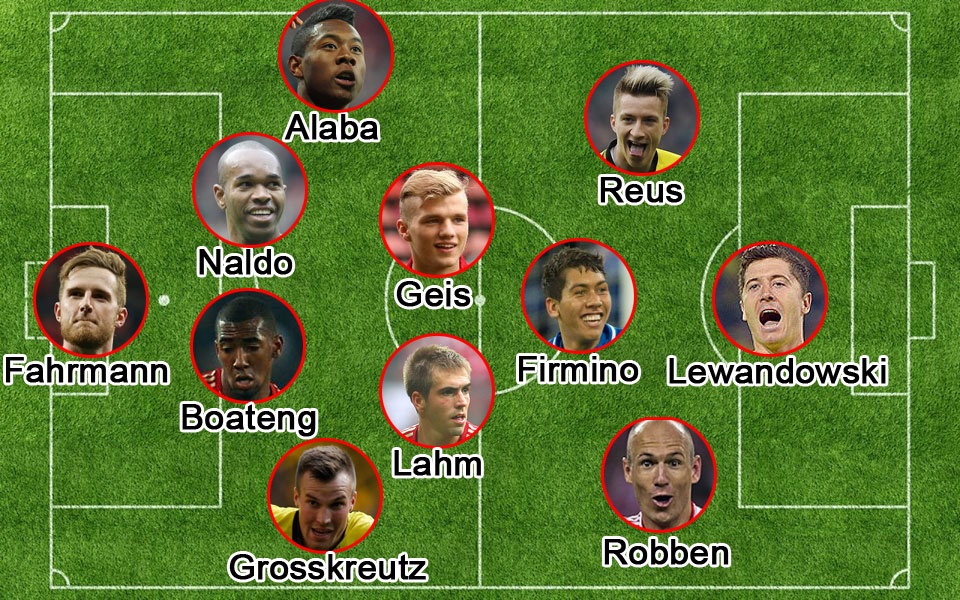 Giống những mùa giải trước, Bayern Munich và Dortmund vẫn là hai CLB góp nhiều cầu thủ nhất vào đội hình tiêu biểu của mùa giải năm nay.
