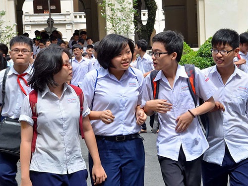 Học sinh dự thi vào lớp 10 năm 2014 tại Trường THPT chuyên Lê Hồng Phong. Ảnh: Người Lao Động. |