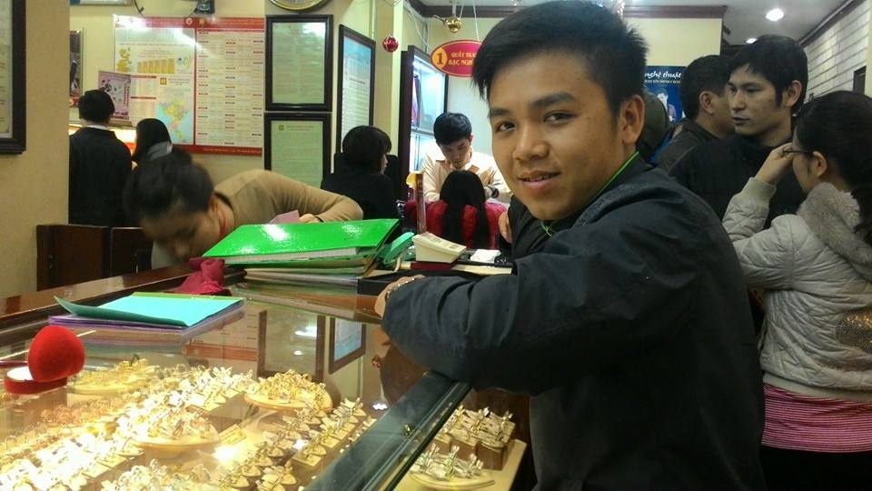 Trong khi đó, đến gần 18h tối, một điểm bán đồ trang sức, vàng, nhẫn trên phố Cầu Giấy vẫn tấp nập người ra kẻ vào. Khách đến cửa hàng phần lớn là nam giới. Đứng chọn mua nhẫn đính hôn tặng bạn gái, anh Lê Trường Giang (Phú Mỹ, Nam Từ Liêm, Hà Nội) cho biết, vội quá, anh chỉ kịp dựng xe và phi vào quầy bán nhẫn. Anh Giang cho biết mua nhẫn với giá 3 triệu đồng, khá rẻ và có nhiều mẫu mã để lựa chọn.
