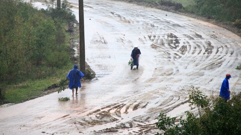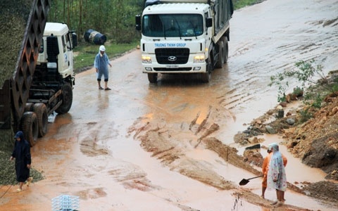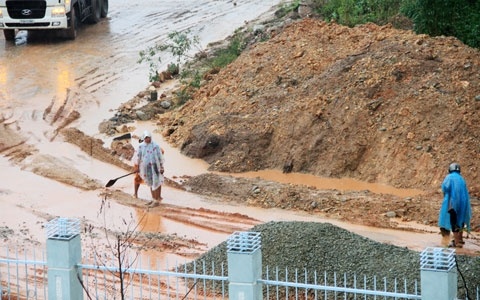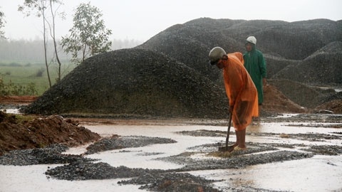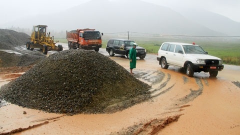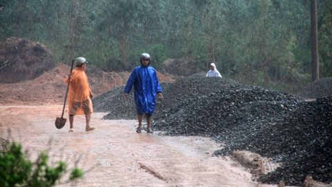 | Dù trời mưa lớn, các đơn vị thi công vẫn đảm bảo tiến độ làm việc. |