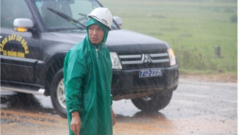 | Tại khu vực Vũng Chùa vào sáng 11/10 hiện trường không khí làm việc khẩn trương. |