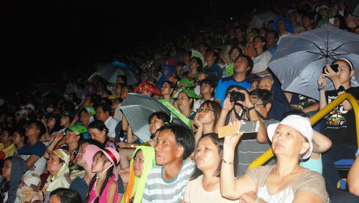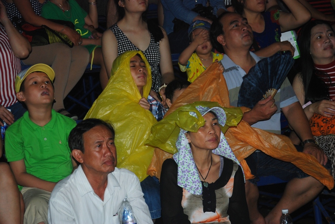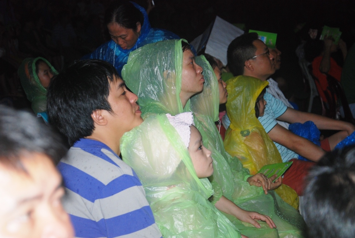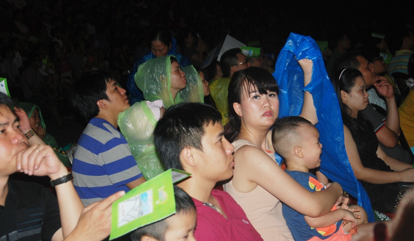 Chỉ một số khán giả chuẩn bị cho mình những chiếc áo mưa. Còn lại, hàng nghìn người phải đội mưa để xem.
