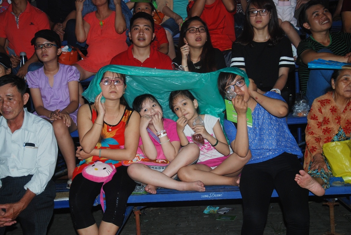 Tuy nhiên, màn trình diễn tuyệt vời của đội Australia và Ba Lan khiến nhiều ông bố, bà mẹ kiên trì trùm áo mưa cho con để hưởng đại tiệc ánh sáng trọn vẹn.