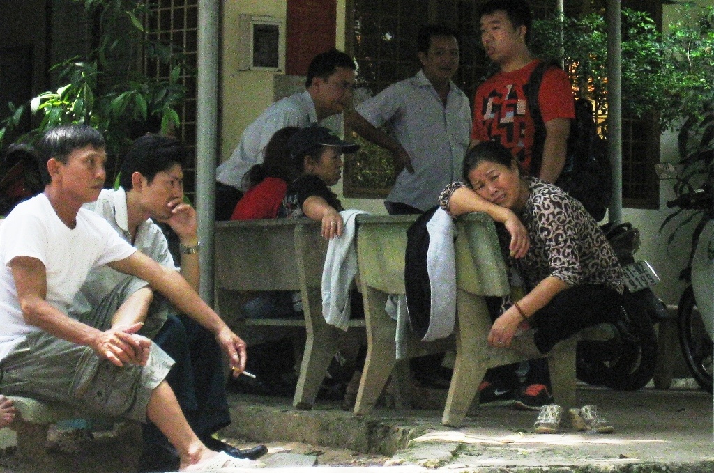 Gia đình các nạn nhân cũng có mặt tại bệnh viện chờ kết luận của tổ khám nghiệm tử thi, họ đau đớn trước sự ra đi đột ngột của người thân.