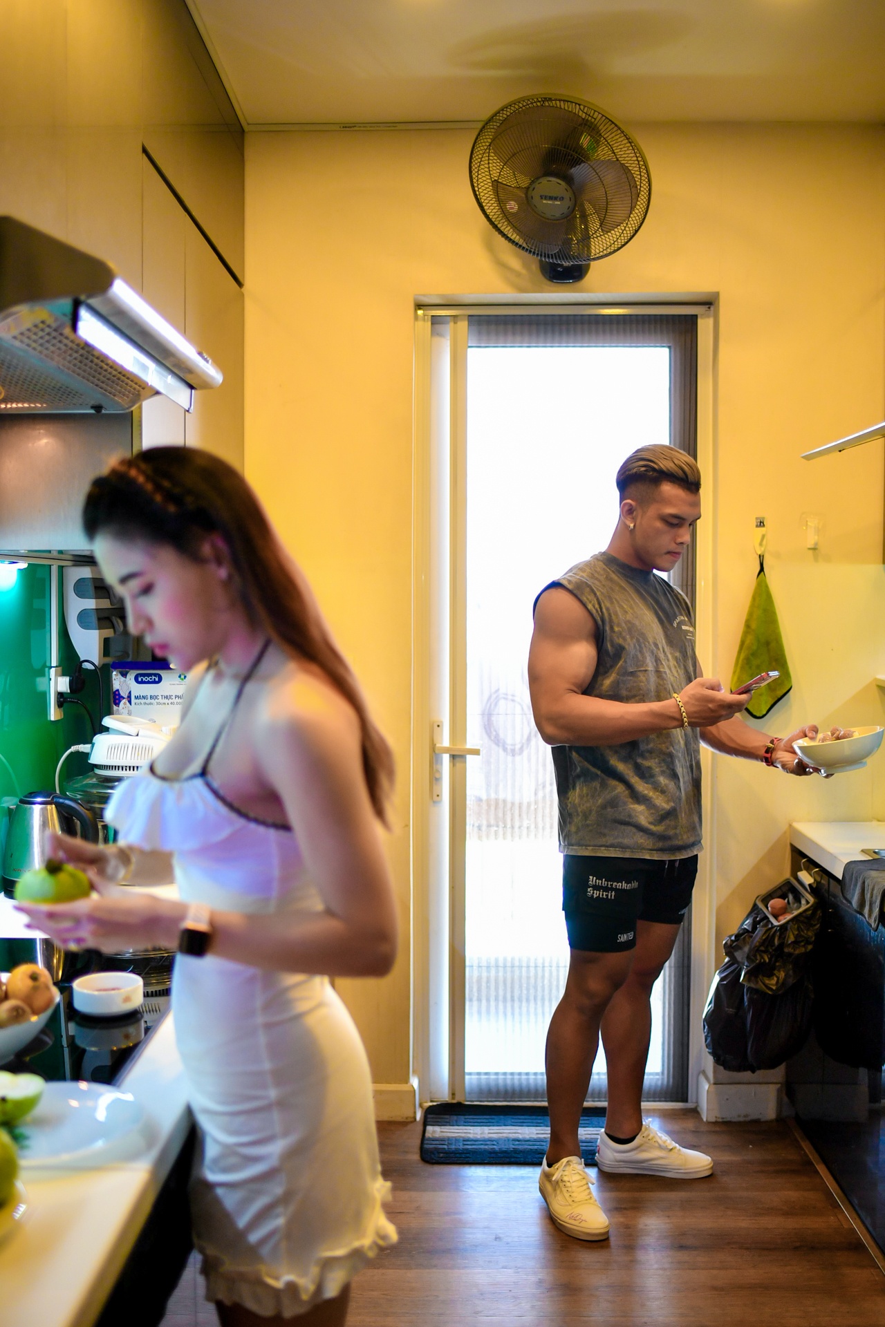 | Tôi là Nguyễn Quyền (27 tuổi), VĐV kiêm HLV thể hình, từng vô địch giải Men's Physique Liên đoàn TP.HCM mở rộng 2019. Bạn gái tôi là Nguyễn Mỹ Nhật (26 tuổi), cũng là PT và từng tham gia một số cuộc thi. |