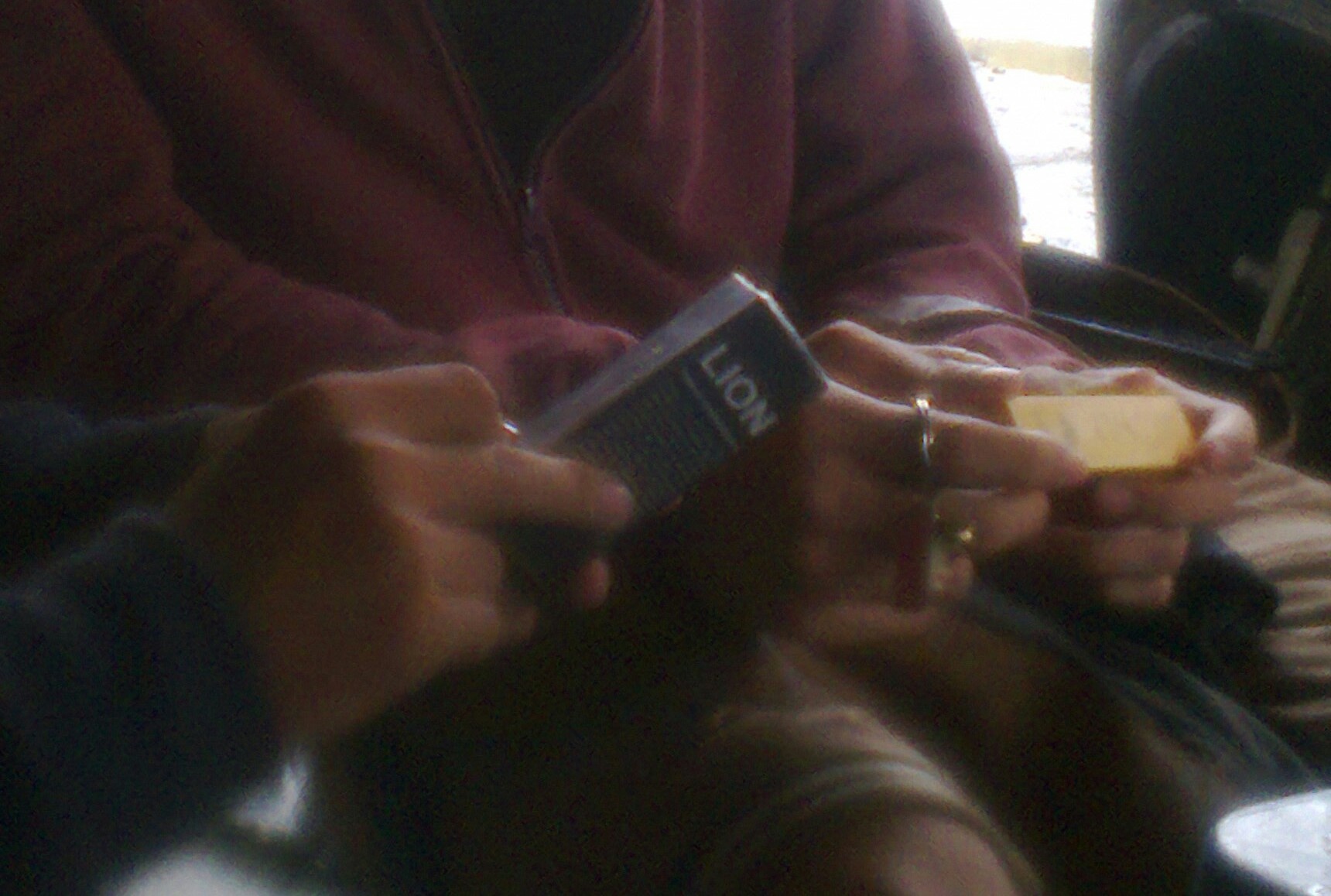 Sau một hồi tiếp thị thấy PV không có ý định mua, bà ta nhìn xung quanh rồi rút từ phía sau gánh hàng của mình một hộp thuốc nhỏ màu đen trắng, bên ngoài chằng chịt chữ Trung Quốc và hình một thiếu nữ khỏa thân.