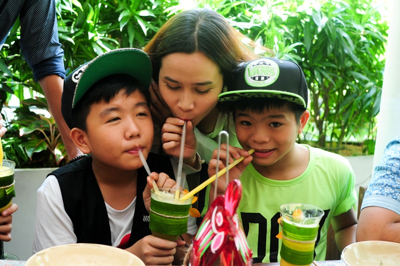 Lưu Hương Giang ân cần hỏi các nhóc tỳ có vừa miệng hay muốn thêm bớt món gì không.