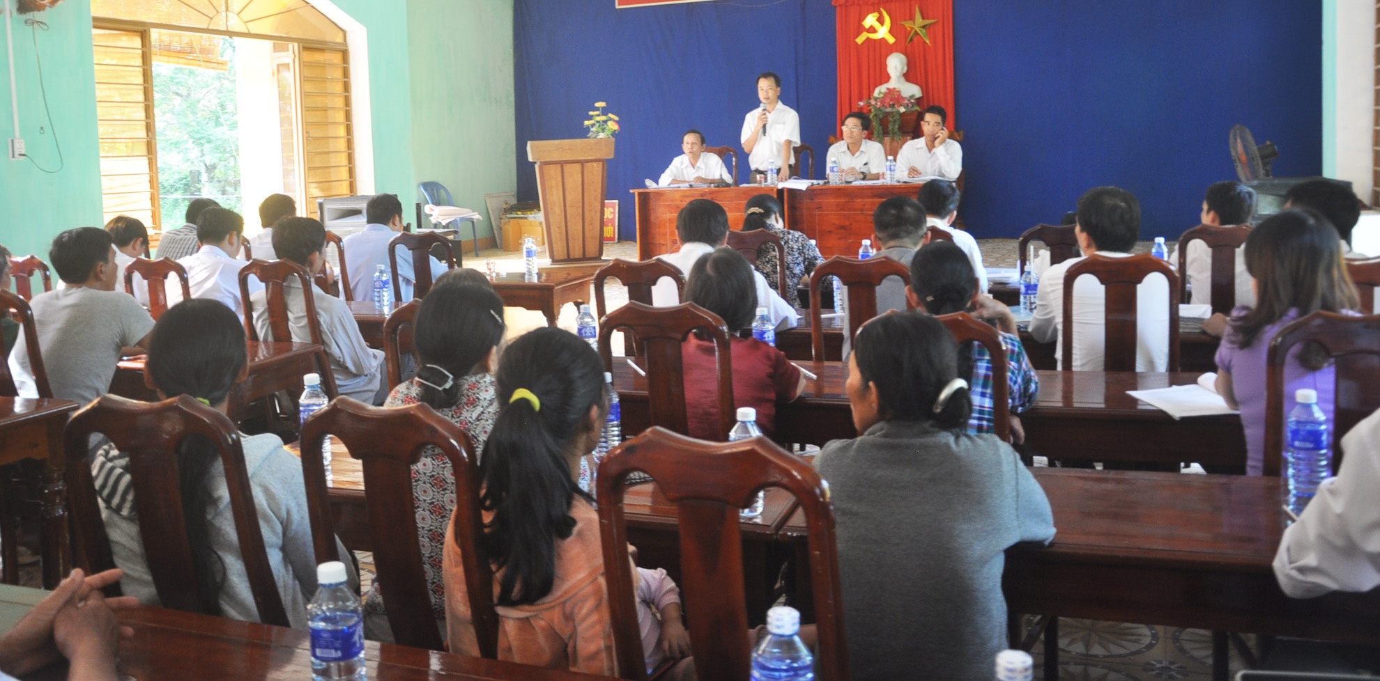 | UBND TP Tam Kỳ và đại diện các đơn vị liên quan đối thoại với dân. Ảnh: Nguyên Vũ. |