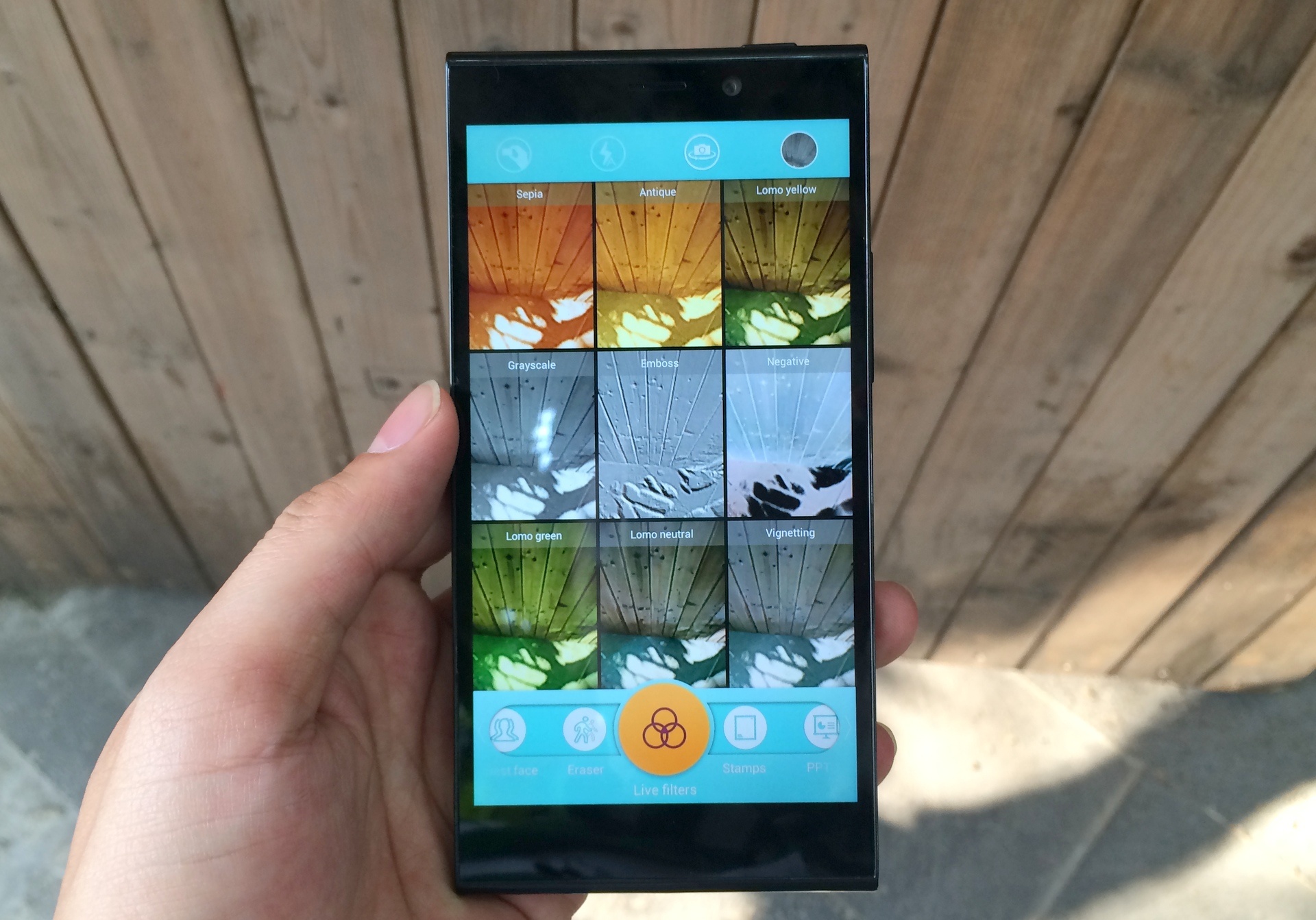 Giao diện tùy chỉnh mô phỏng các thiết bị dùng phím vật lý. Gionee cho biết, kích thước điểm ảnh 1,12 μm cho chất lượng ảnh tốt hơn. Đây là trang bị được dự đoán sẽ có mặt trên Samsung Galaxy S5.