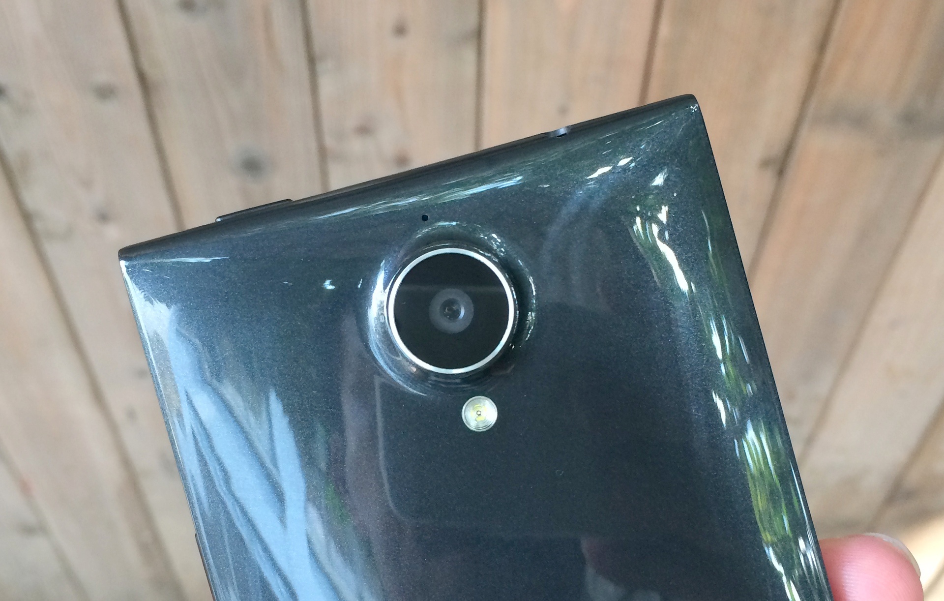 | Camera của máy ở mặt sau hơi lồi lên, bên dưới là đèn flash. |