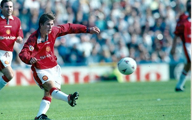 | Bàn thắng để đời của David Beckham vào lưới Wimbledon, giúp tên tuổi anh trở nên nổi tiếng. Ảnh: Dailly Mail. |