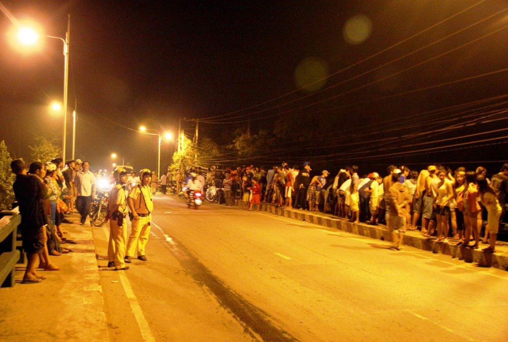 | Hàng trăm người hiếu kỳ đến theo dõi vụ việc dù đã rất khuya. |