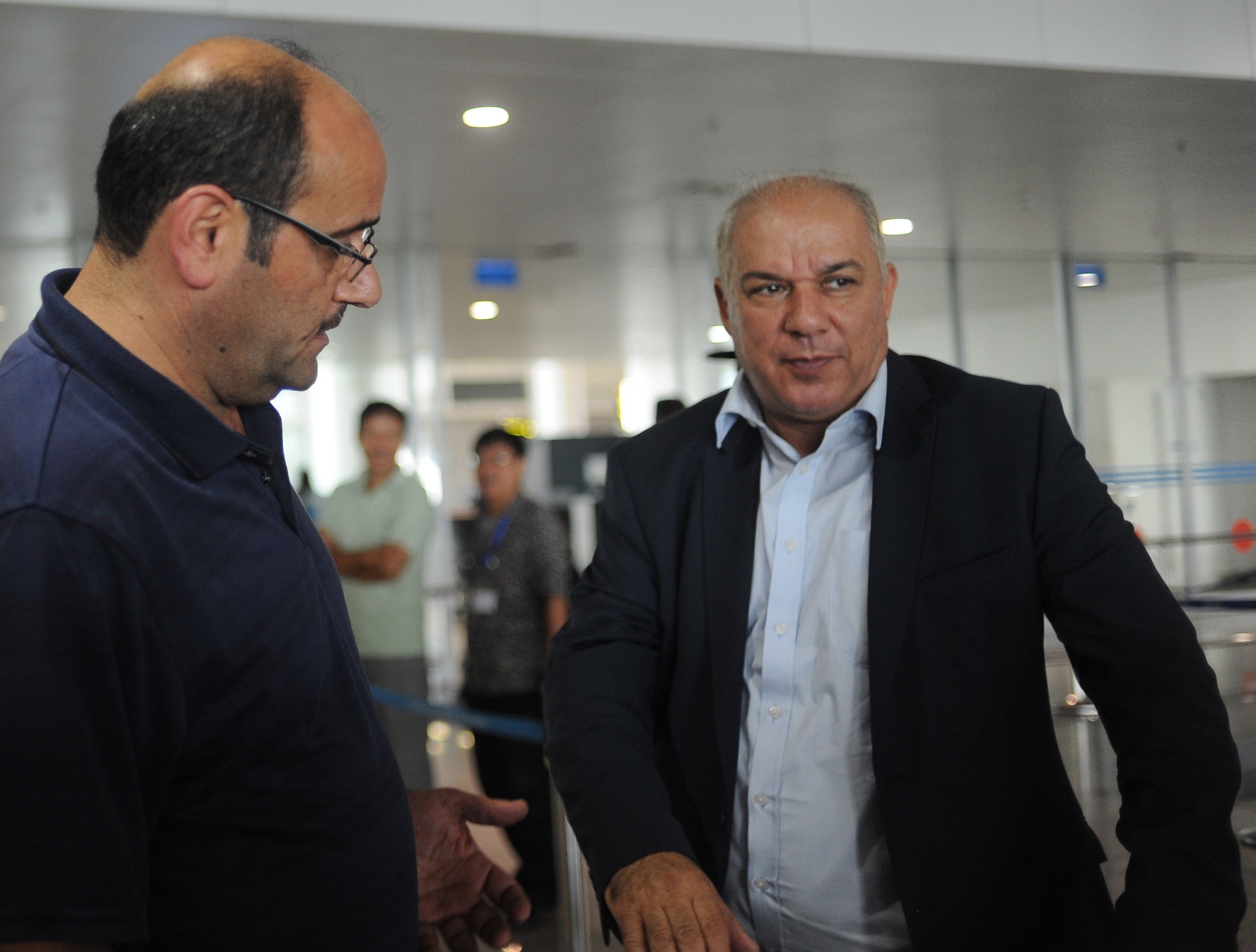 | Trưởng đoàn Iraq (trái) sang Việt Nam từ 30/9 và có mặt tại sân bay Nội Bài đón đội nhà. HLV trưởng Yahya Alwan (phải) được bố trí xe riêng cùng các lãnh đạo Liên đoàn bóng đá Iraq về khách sạn nghỉ ngơi trước. |