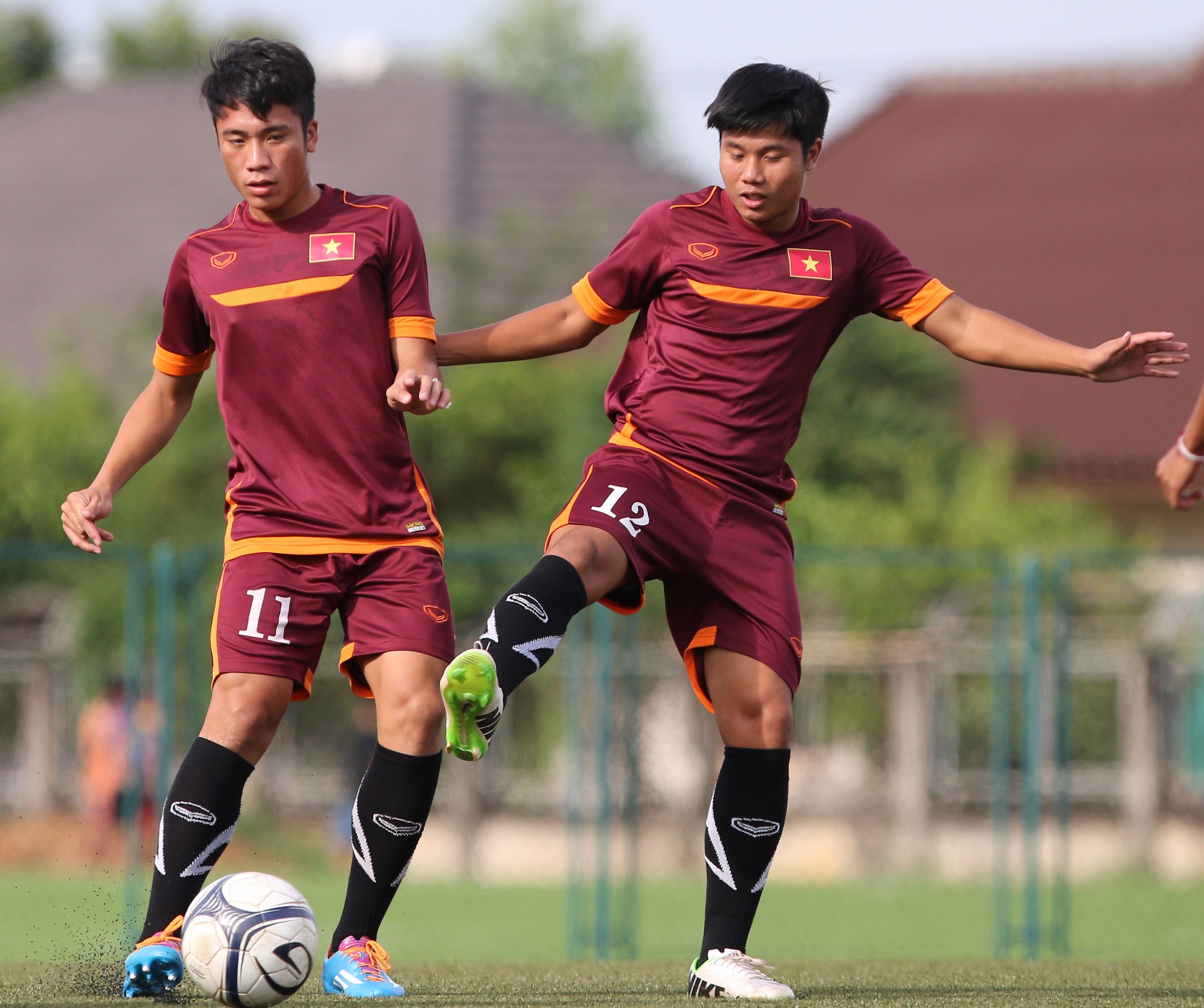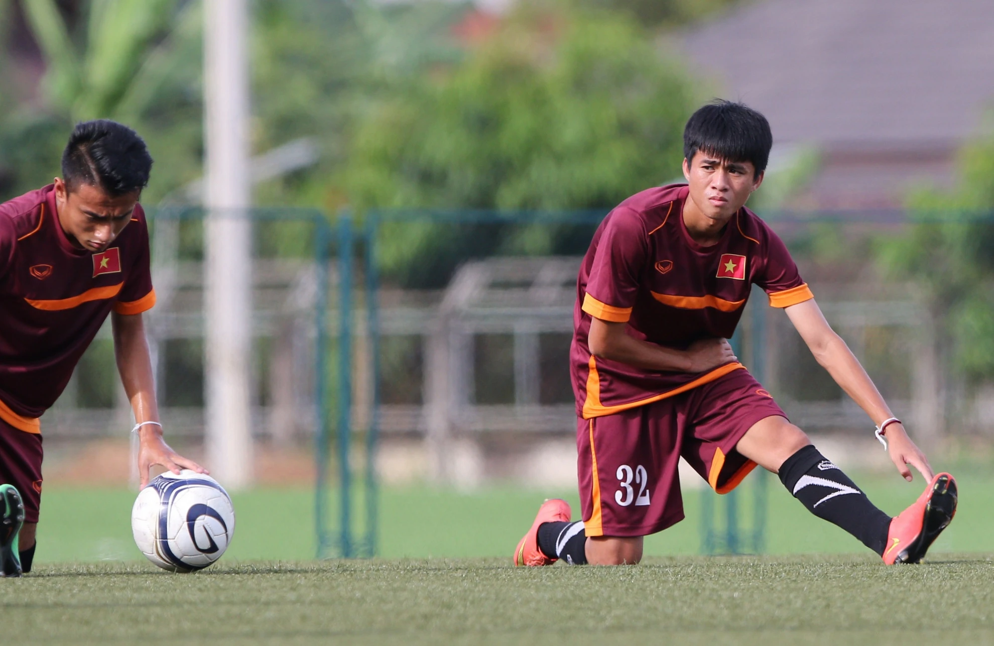 | Trong khi các đồng đội tập luyện, tiền đạo Thanh Sơn (thuộc biên chế HAGL) chưa bình phục chấn thương nên tập nhẹ ở góc riêng cùng Xuân Nam - cầu thủ đã ghi được 15 bàn trong màu áo CLB SHB Vientiane ở Lao League 2015. Tiền đạo U19 Thanh Sơn bị rạn xương trán, cần nghỉ 3 tuần để hồi phục và phải sớm nói lời chia tay giải U19 Đông Nam Á 2015. |