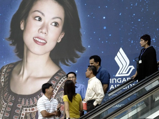 | Quảng cáo của hãng hàng không Singapore Airlines trong một trung tâm thương mại. Ảnh: AFP |
