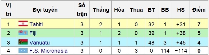 Trước đó, Tahiti và Fiji cùng nhau lập kỷ lục chiến thắng đậm nhất cho riêng mình khi đụng Micronesia. Cụ thể, Tahiti đã đánh bại đối thủ này với tỷ số 30-0, trong khi Fiji dễ dàng giành chiến thắng 38-0.
