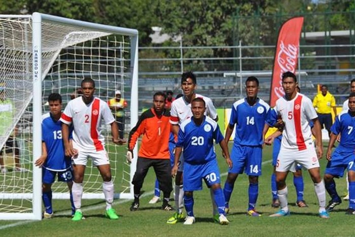 | Micronesia (áo xanh) nhận những thất bại kỷ lục trong lần đầu tiên dự Pacific Games. Ảnh: 3news. |