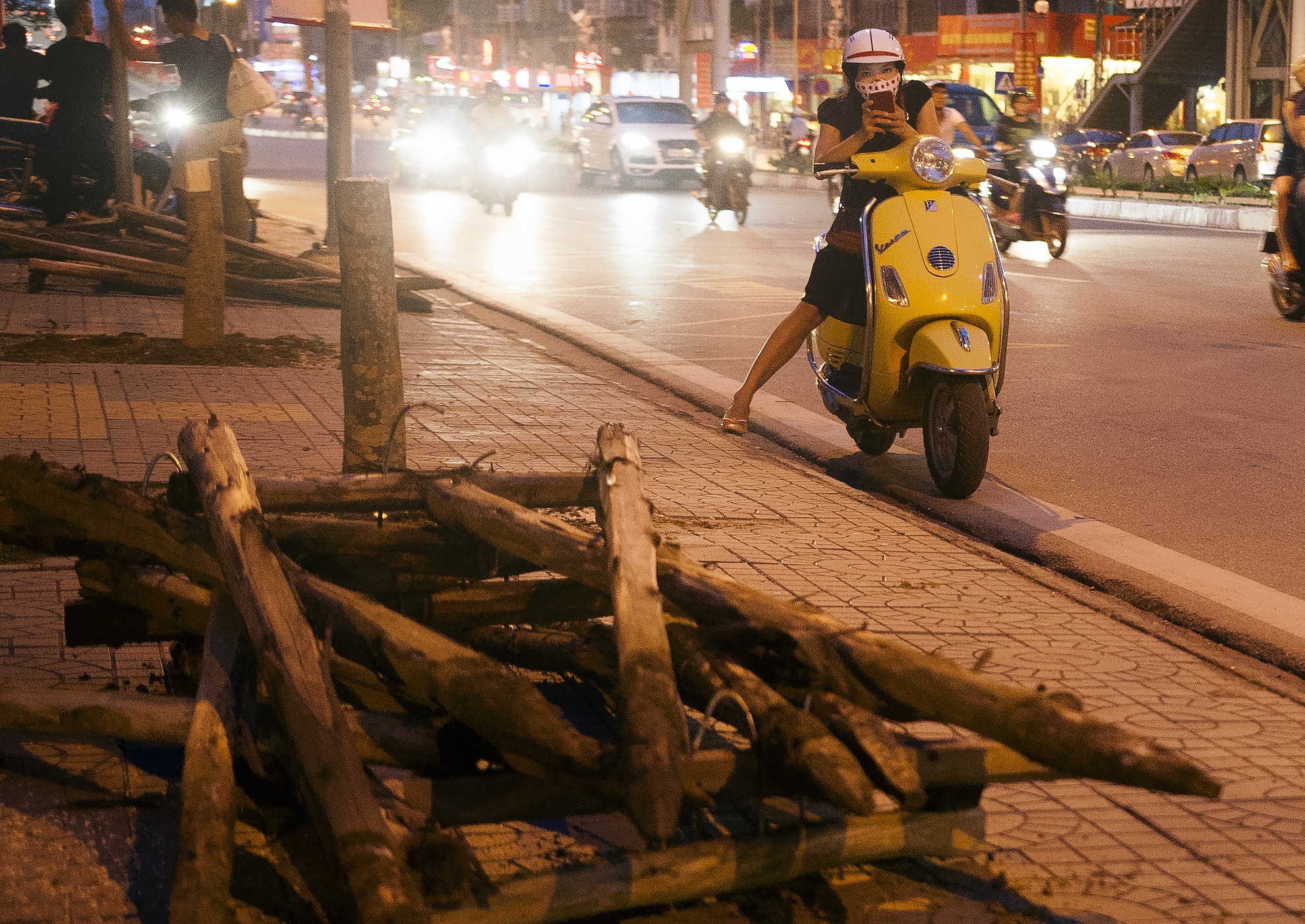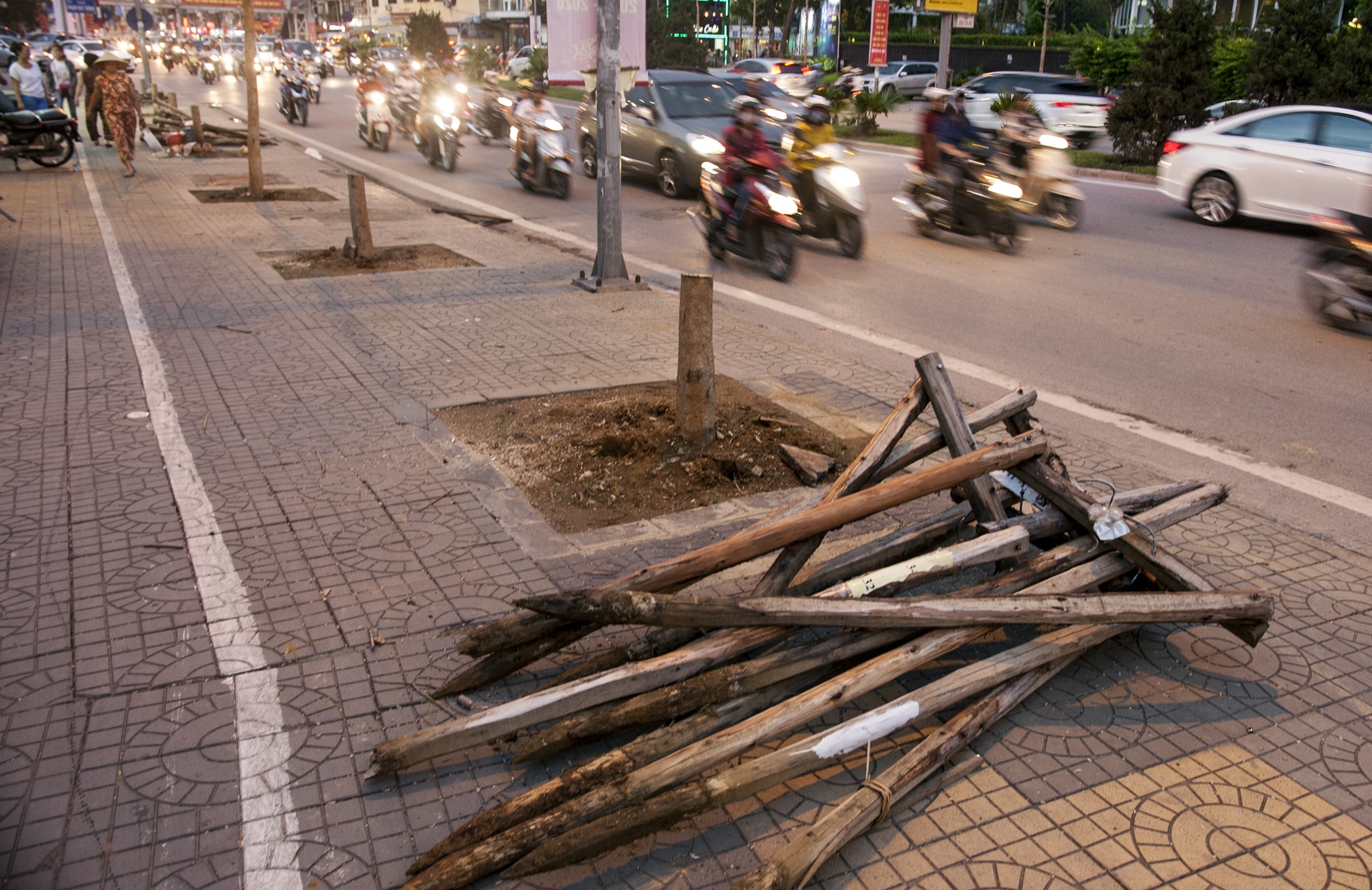 Hình ảnh hàng cây mỡ đã bị chặt trên phố Nguyễn Chí Thanh (Hà Nội) lúc 18h30 chiều 31/7.