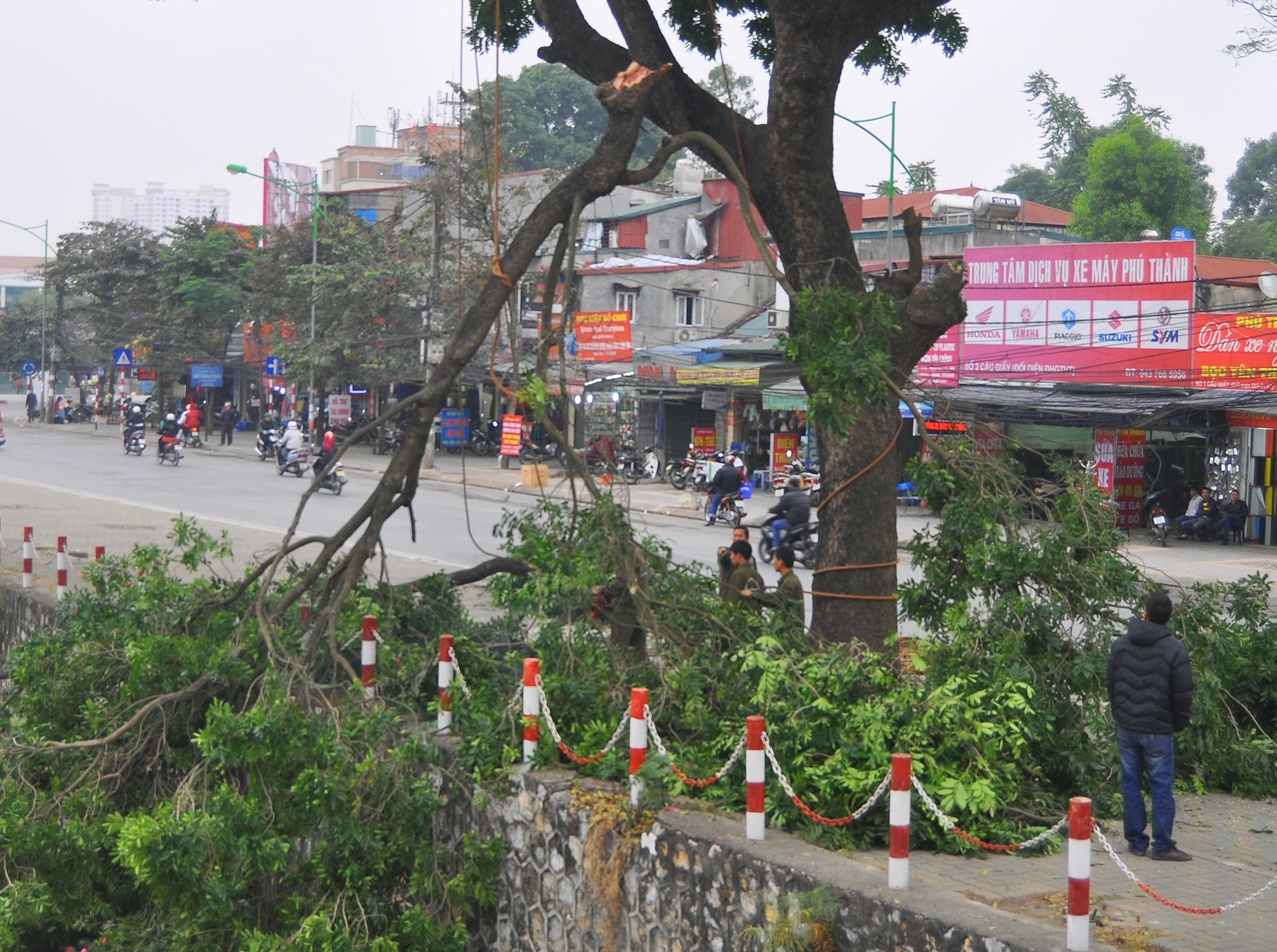 Đốn hạ hàng xà cừ cổ thụ trước vườn thú Thủ Lệ