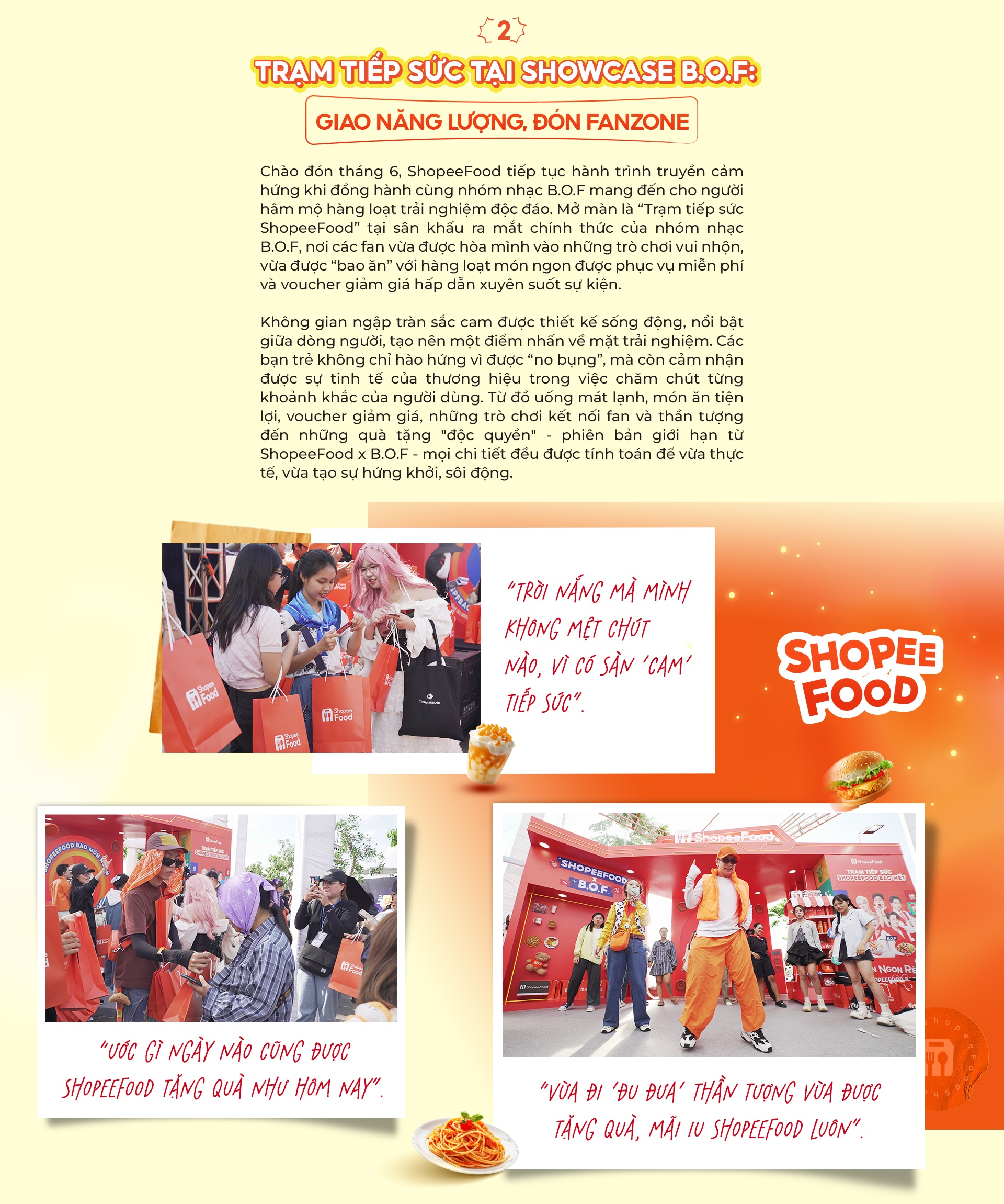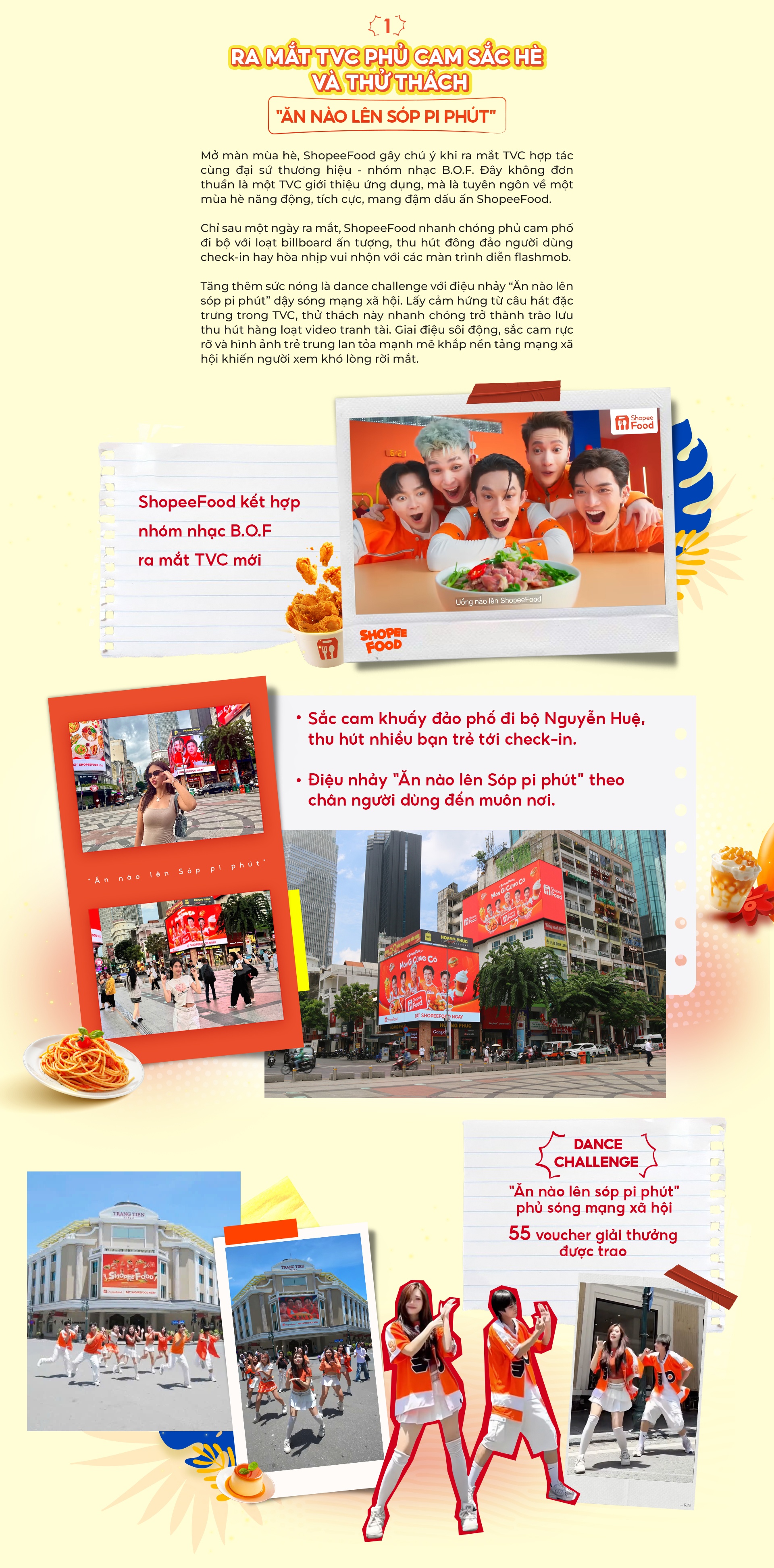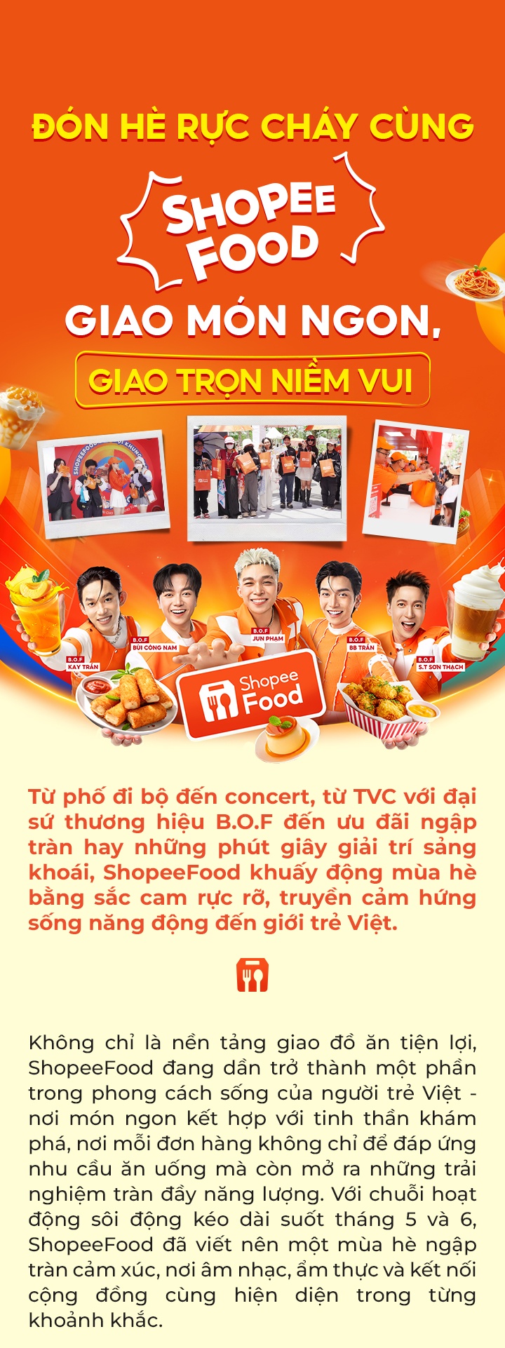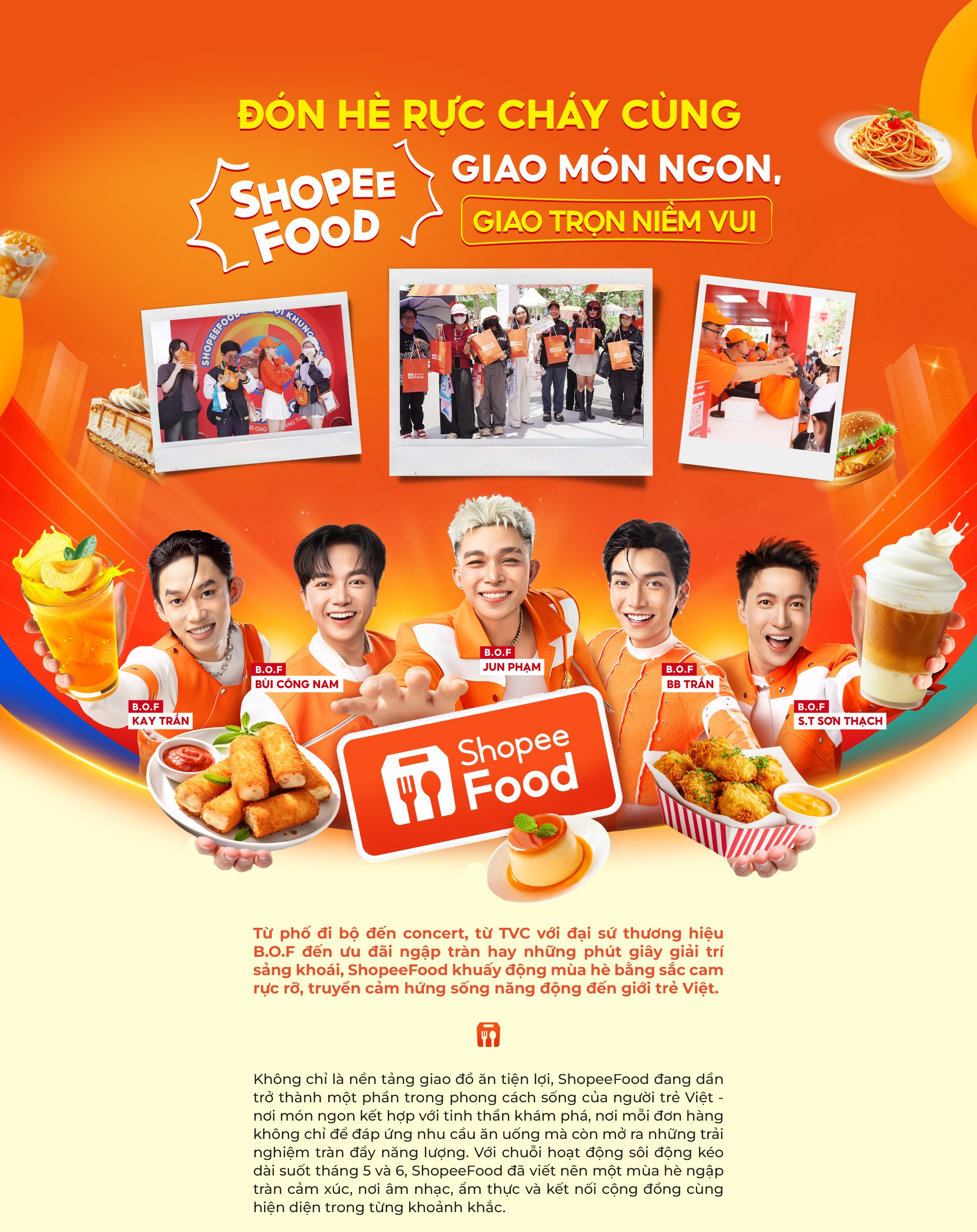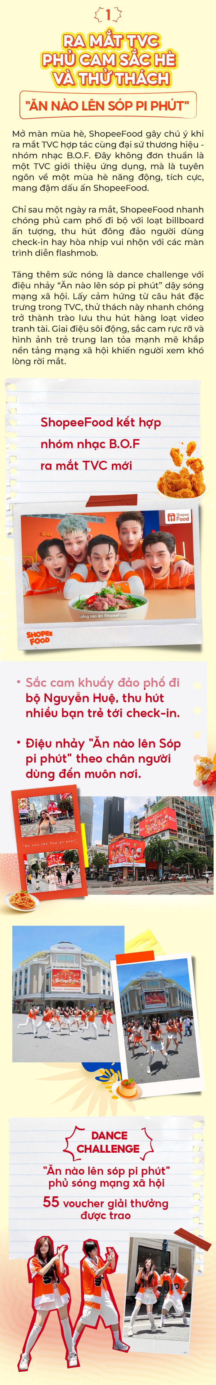 Từ phố đi bộ đến concert, từ TVC với đại sứ B.O.F đến ưu đãi ngập tràn, ShopeeFood khuấy động mùa hè bằng sắc cam rực rỡ, truyền cảm hứng sống năng động đến giới trẻ Việt.