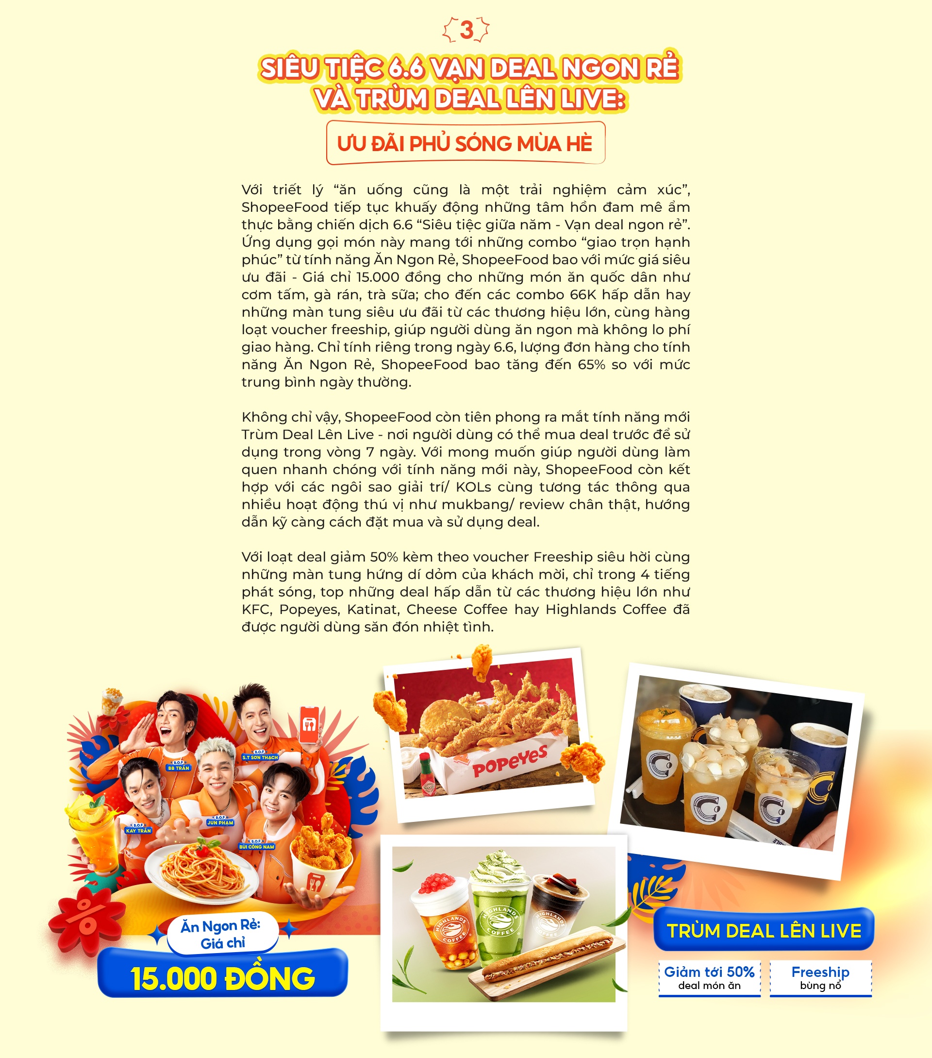 Nóng hơn cả thời tiết mùa hè lúc này chính là loạt deal món ăn, thức uống chuẩn bị đổ bộ xuống sự kiện “6.6 Siêu Tiệc Giữa Năm - Vạn Deal Ngon Rẻ”.