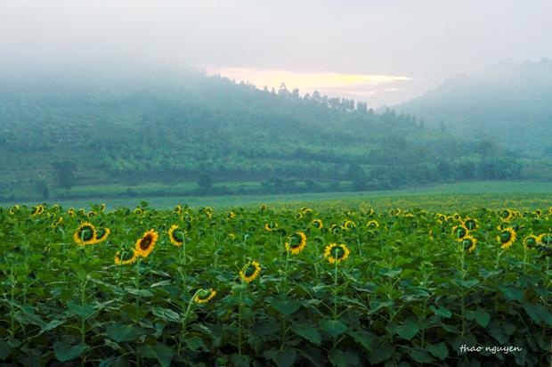 Khoảng đầu tháng 12 là thời điểm đồi hoa hướng dương rất đông du khách. Nếu muốn chụp ảnh mà không muốn bị làm phiền, thì sáng sớm những ngày cuối tháng 11 là thời điểm lý tưởng để bạn tới đây.
