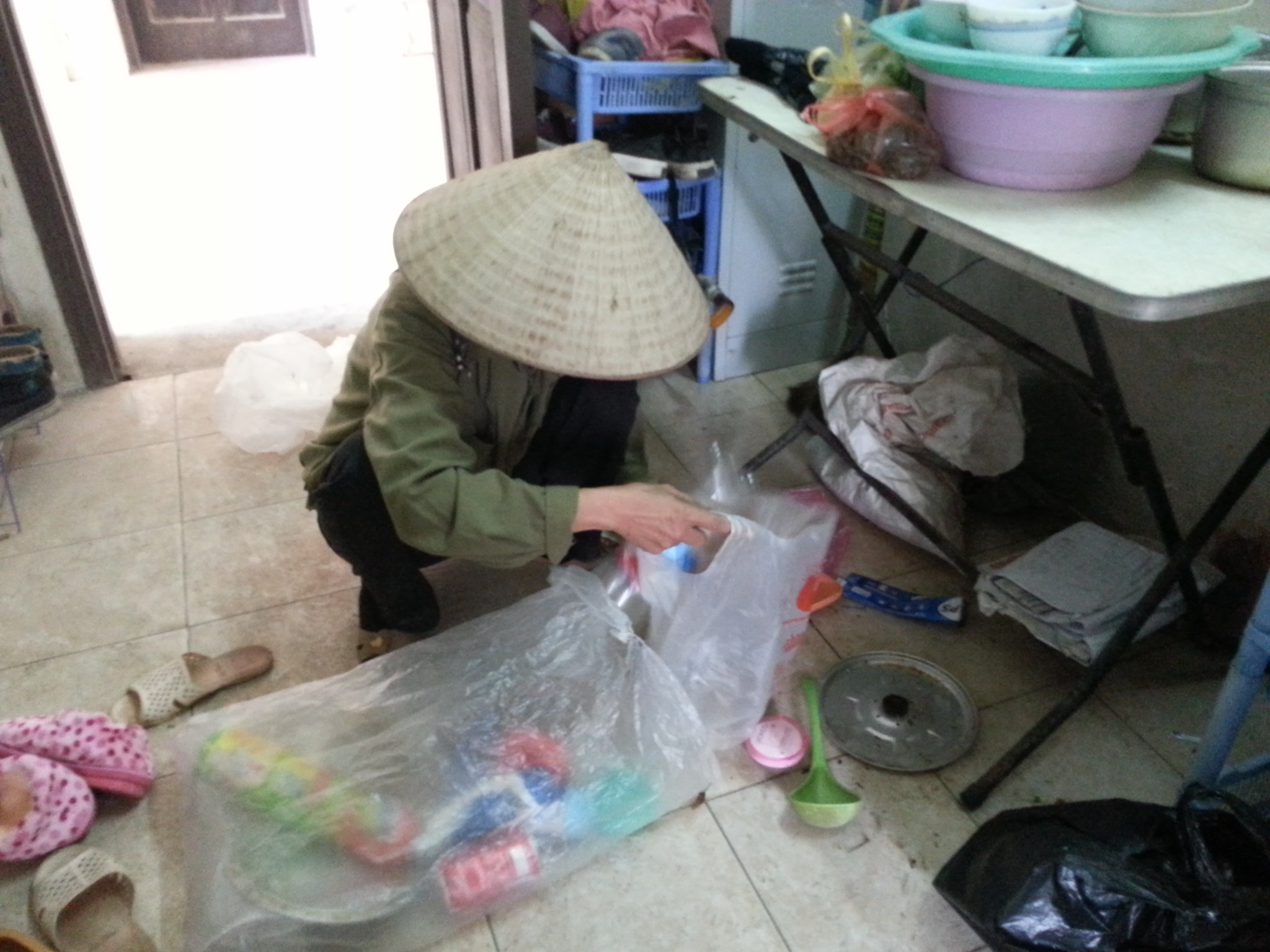 Ngoài tiền công được trả, bà Mỹ còn có thể kiếm thêm từ việc bán phế liệu. Bà cho biết, các văn phòng thường có nhiều giấy loại, chai nước nên bà có thêm thu nhập từ tiền bán đồng nát.