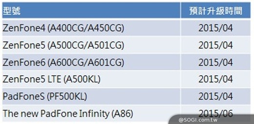 Theo trang tin Sogi (Đài Loan), Asus đã xác nhận thông qua một diễn đàn chính thức của mình rằng toàn bộ dòng Zenfone sẽ nhận được bản cập nhật Android 5.0 Lollipop vào tháng 4/2015, cùng với PadFone S.