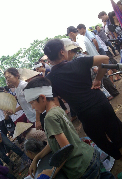 “Hôm nó mất, nước sông dâng lên đến ngang ngực người lớn. Chúng tôi người kéo, người đẩy bè chuối cho quan tài trôi hết khúc sông, ra tới đầu cánh đồng mới đưa lên xe tang đi vòng ra nghĩa địa được. Cả đoàn người đưa tang nhìn chiếc quan tài trôi trên sông, không ai cầm được nước mắt ”, anh Hùng, một người hàng xóm có mặt đưa đám tang ngậm ngùi chia sẻ.