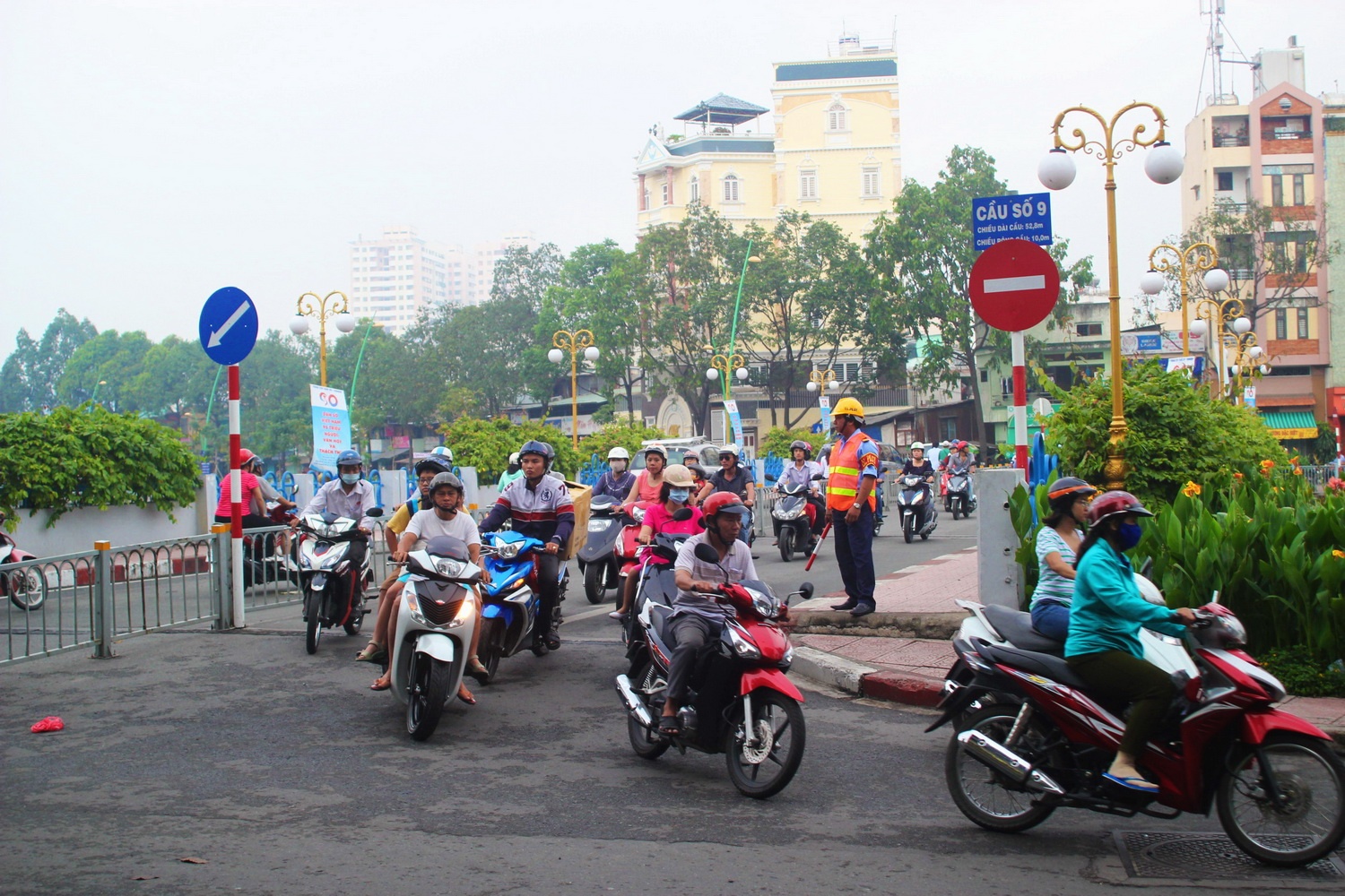 | Các phương tiện giao thông qua lại cầu số 9 và cầu tạm hai bên cầu Lê Văn Sỹ thuận lợi |
