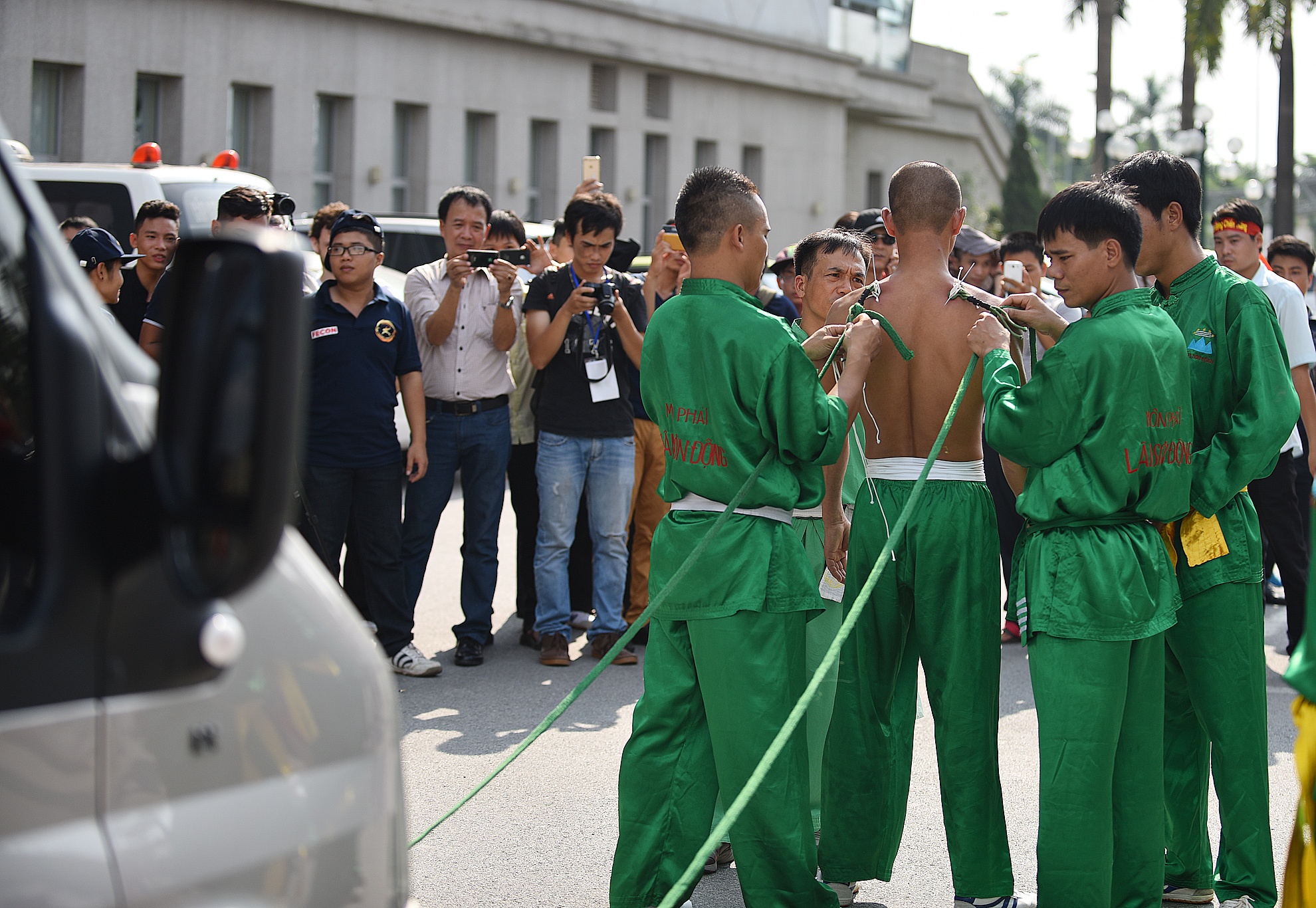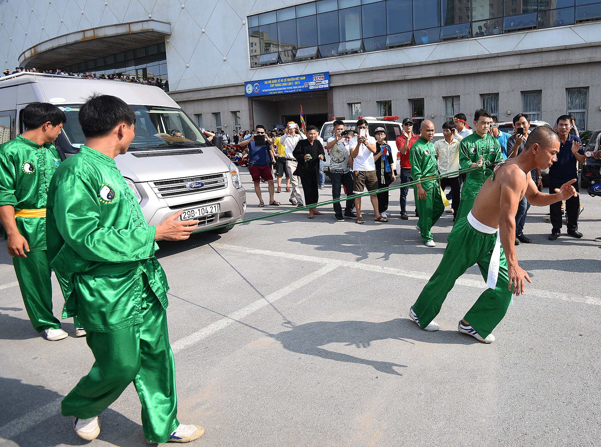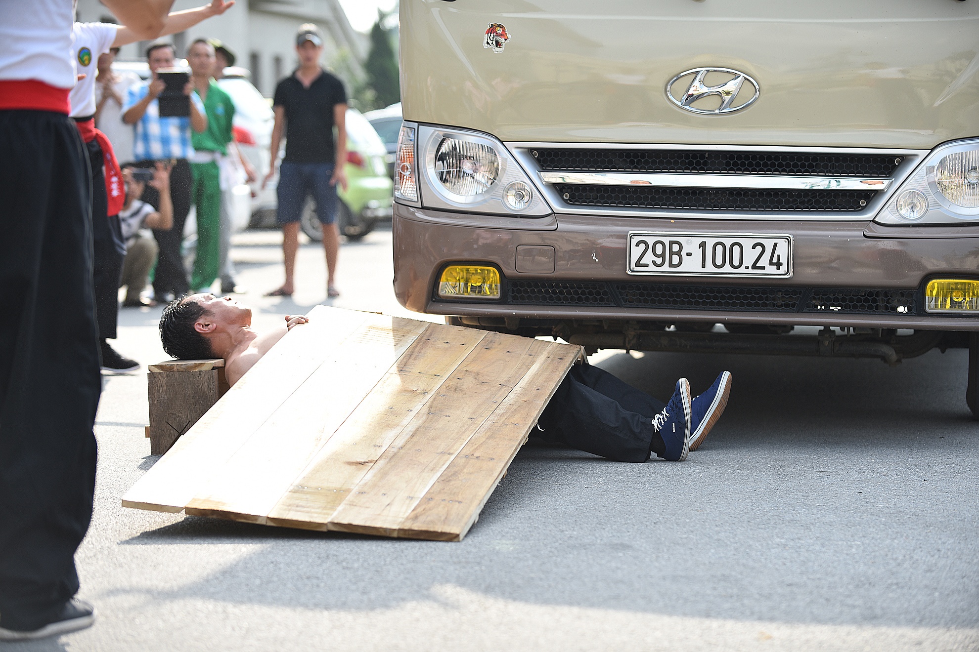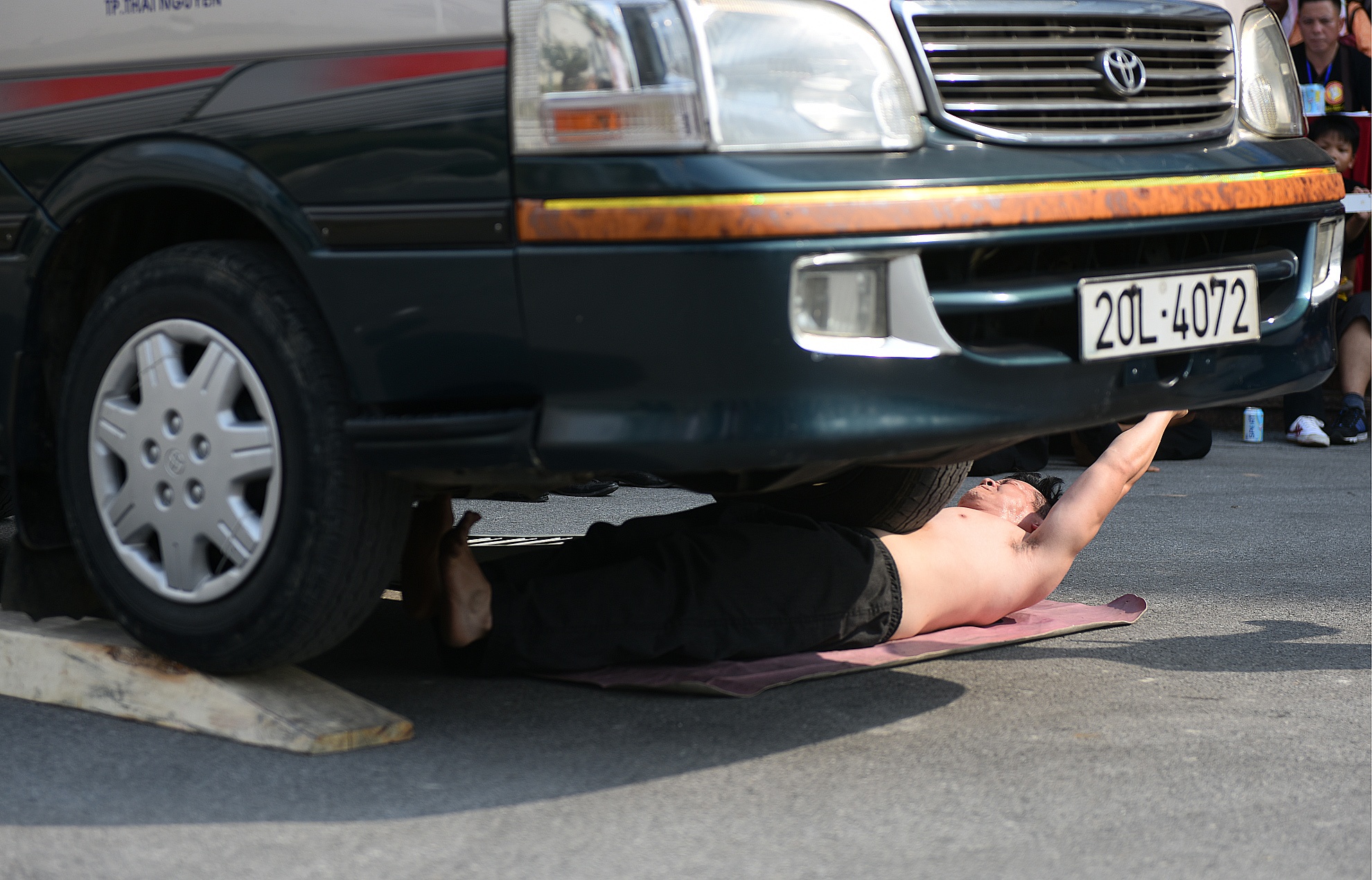 | Dùng xe ôtô 16 chỗ cán qua người của đoàn võ thuật Duy Thắng, tỉnh Thái Nguyên. |