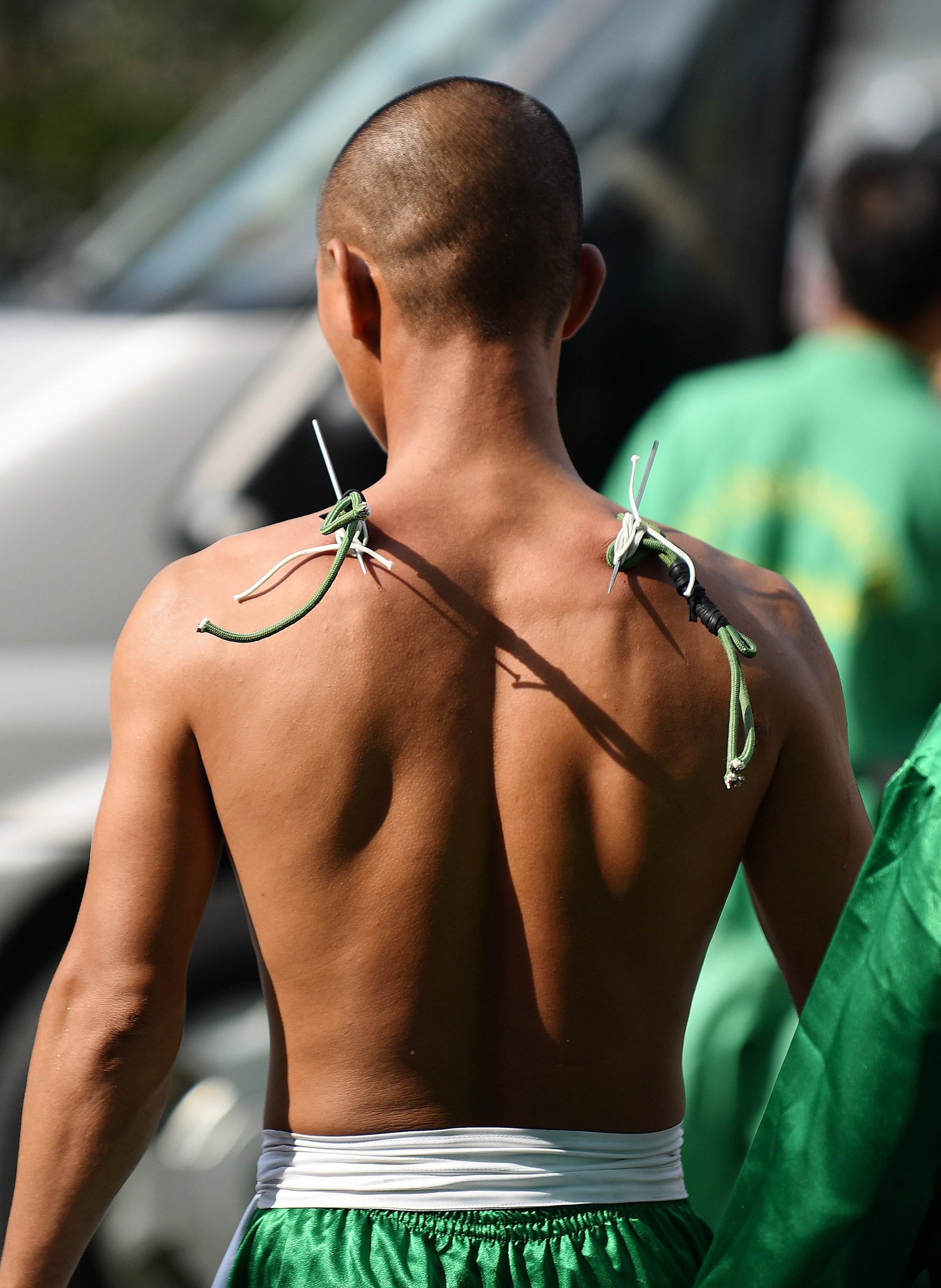 | Phần lưng của võ sư Tuấn không chảy máu. |