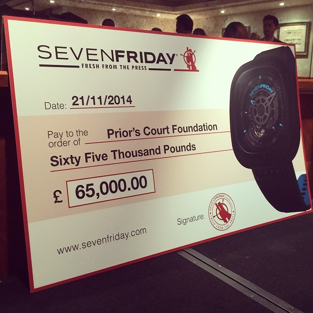 Bà Lucinda Stubbs, người đứng đầu quỹ Prior’s Court cho biết: "Chúng tôi muốn gửi lời cảm ơn chân thành đến thương hiệu SevenFriday và những người hâm mộ thương hiệu này vì đã hỗ trợ cho quỹ. Chúng tôi cảm thấy rất hạnh phúc khi được tham gia vào dự án thú vị này. Những chiếc đồng hồ thật sự bắt mắt và độc đáo. Chúng tôi tin chắc rằng sẽ có nhiều người yêu thích chúng”.