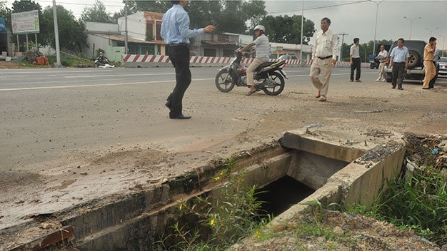 | Nhiều hố ga ven quốc lộ 51 chưa thi công hoàn chỉnh. |
