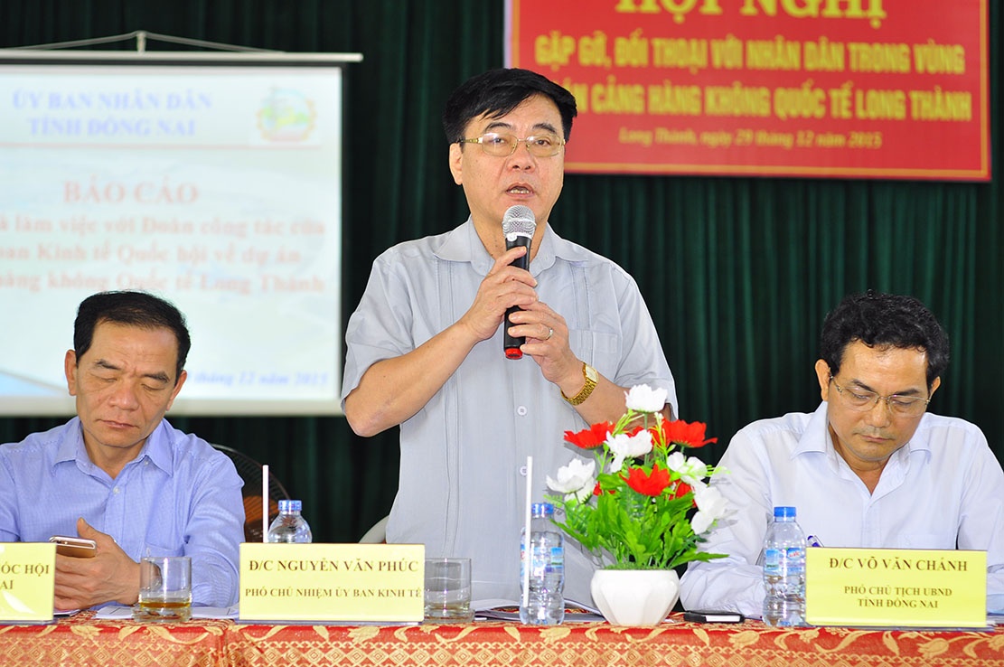 Ông Nguyễn Văn Phúc, Phó chủ nhiệm UBKT Quốc hội cũng đồng tình với người dân và lãnh đạo Đồng Nai về việc cần triển khai sớm dự án sân bay Long Thành.