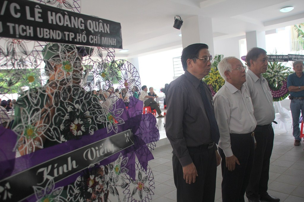 | Ông Lê Hoàng Quân (ở giữa), Chủ tịch Ủy ban nhân dân TP.HCM có mặt từ sáng để viếng tác giả Hòn Đất. |