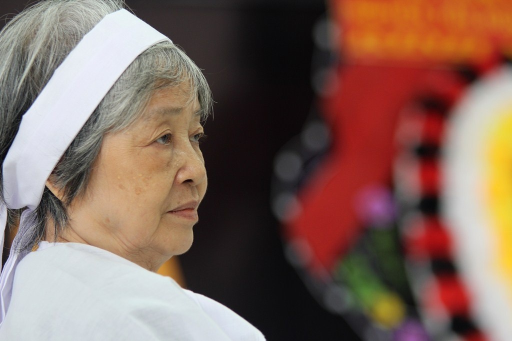 | Trong khi đó, do sức khỏe yếu, bà quả phụ Trần Phúc Mộng Loan lặng lẽ ngồi một góc ở tang lễ. Đến gần trưa, người nhà đưa bà về nhà nghỉ ngơi. |