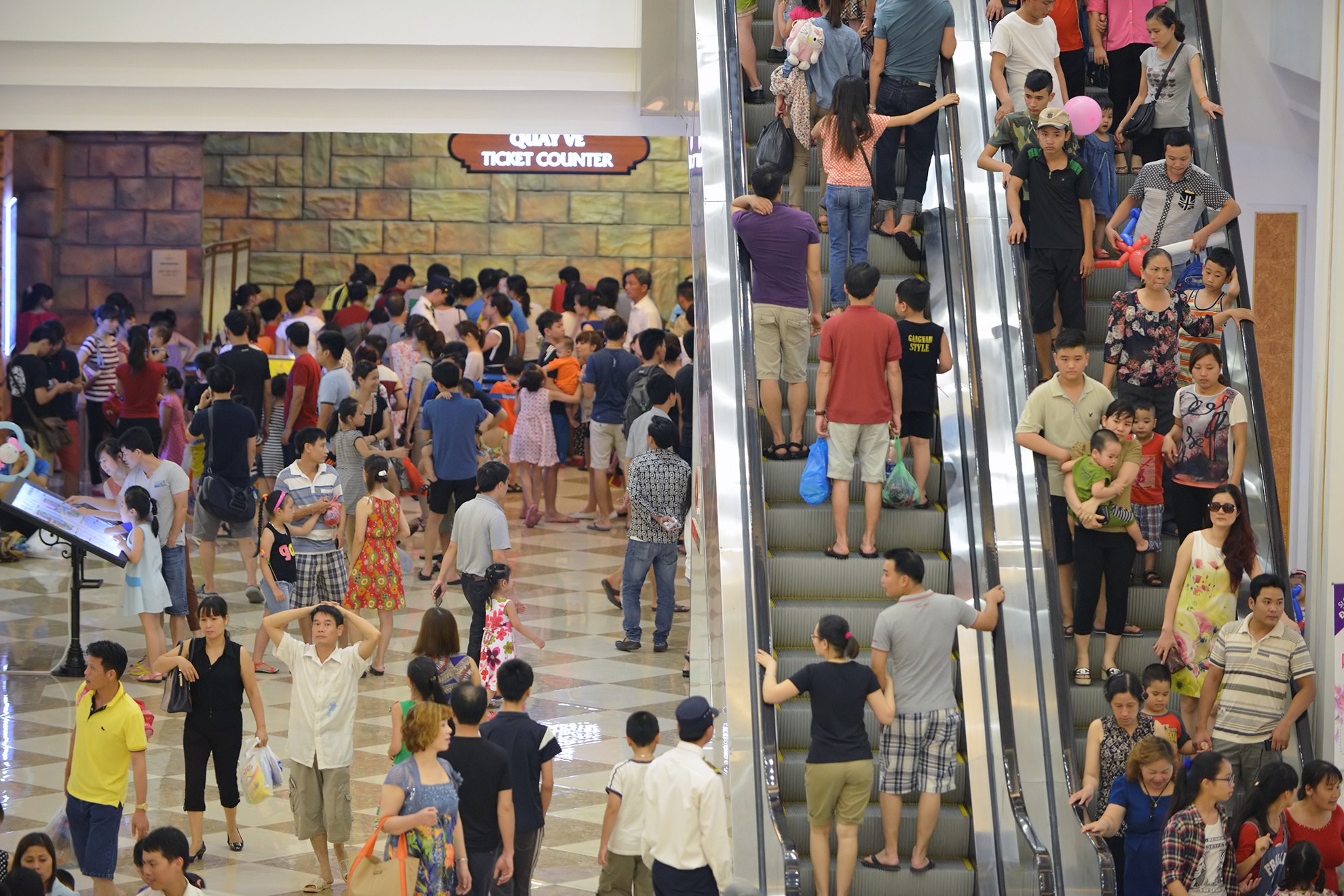 | Các lối đi lại và thang cuốn đông đúc, trái với khung cảnh ảm đạm trong kỳ nghỉ 30/4 cách đây chưa lâu. |